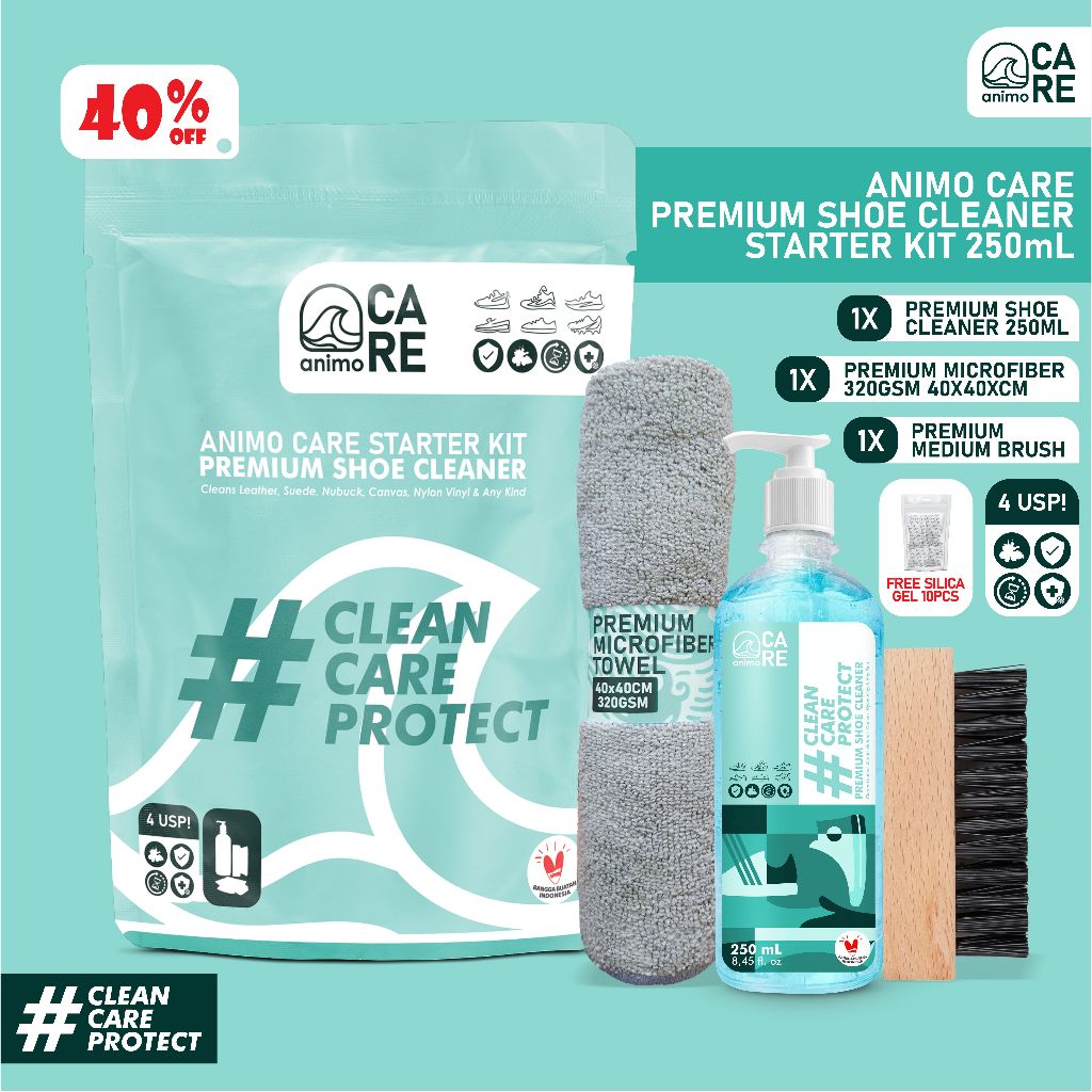 Animo Care - Starter Kit Premium Shoe Cleaner 250ml / Paket Cuci Sepatu Cairan Sabun Pembersih Sepatu