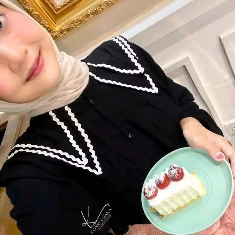 Pinka Blouse Kemeja Katun Twist Kerah Renda