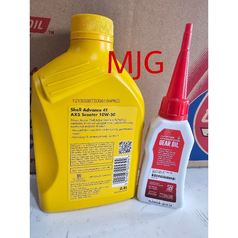 Paket Oli Shell Advance AX5 Matic 10W-30 800ML/Plus AHM Gear 120ML/Oli Mesin Motor Matic 110CC-125CC