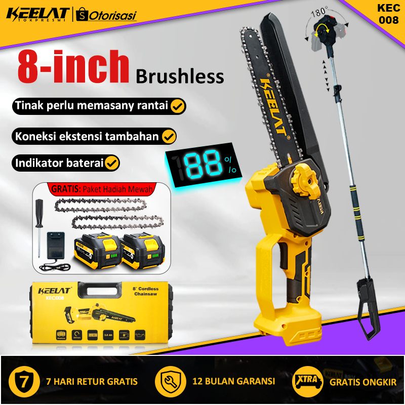 KEELAT KEC008 Brushless 8 Inch Cordless Chainsaw Electric Saw Chainsaw Battery Wood Cutter Gergaji Elektrik