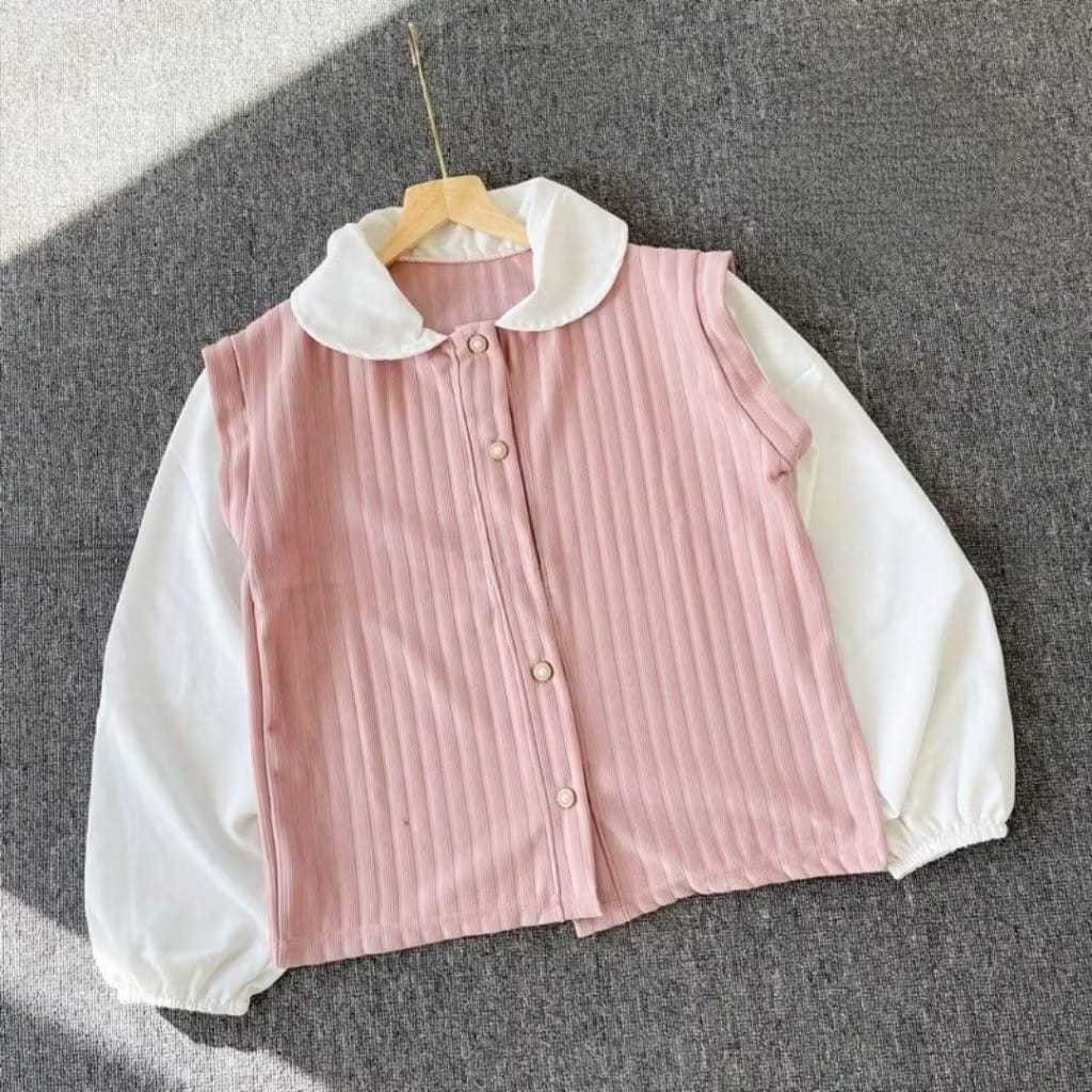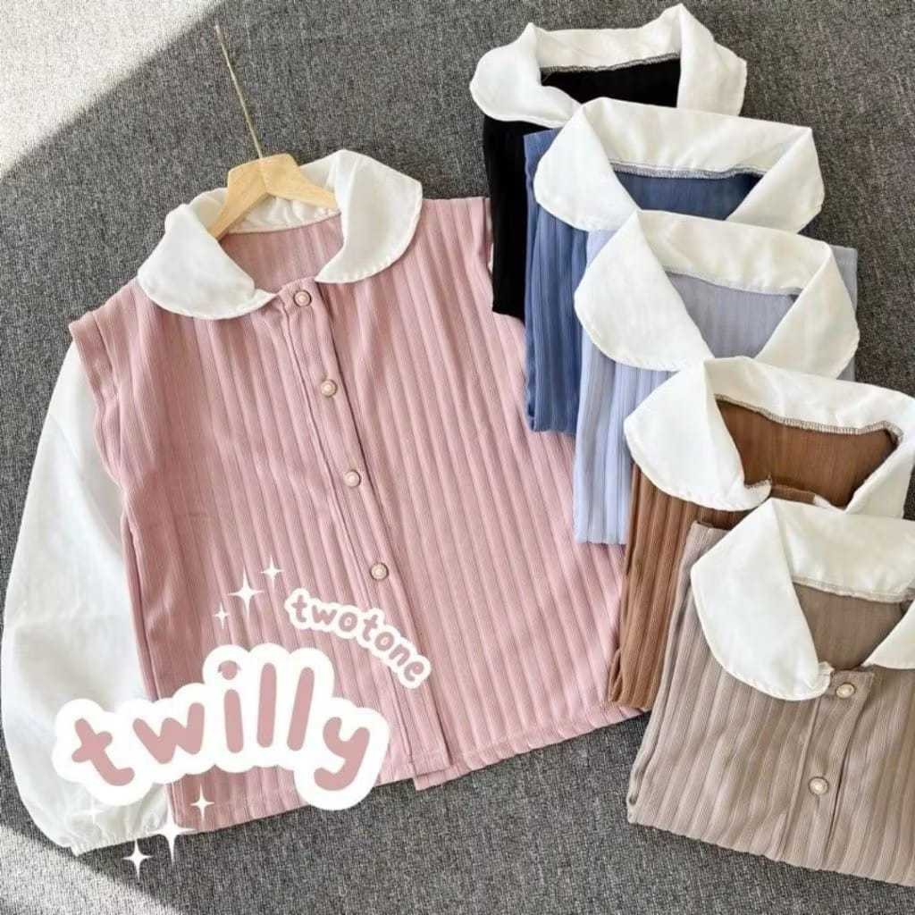 Atasan Wanita TWILLY TWOTONE BLOUSE Knit Hornet Korean Vintage