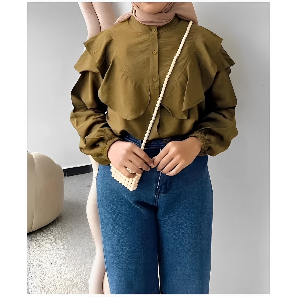 blouse wanita ruffle/blouse wanita korean style/baju atasan wanita terbaru/kemeja wanita lengan panjang/atasan wanita pu