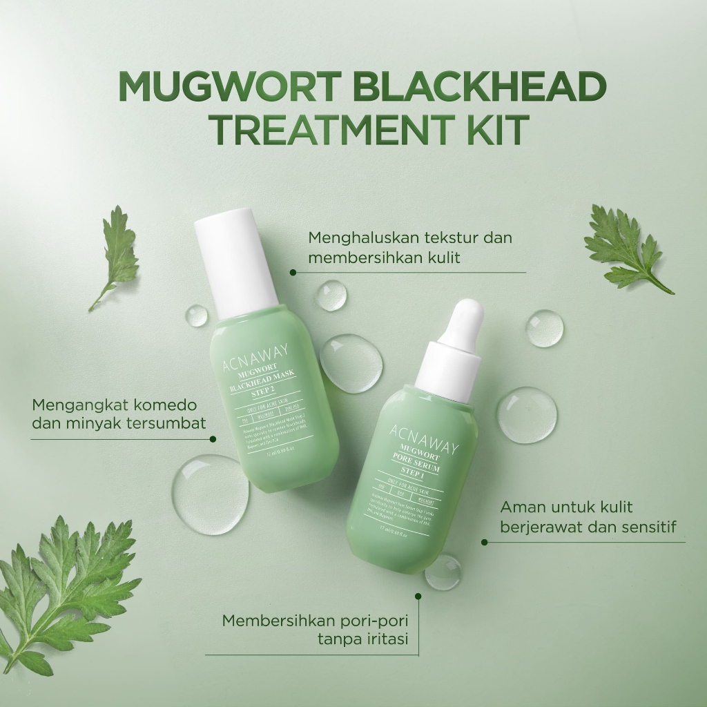 ACNAWAY Mugwort Blackhead Treatment Kit - Mugwort Pore Serum + Mugwort Blackhead Mask Serum Pori & Mask Treatment Komedo