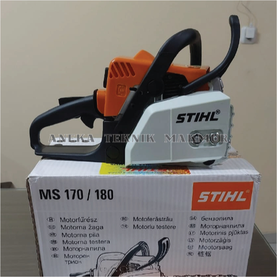 Chainsaw STIHL MS 180 Komplit Siap Pakai + Bar-Rantai 16"/27T Mesin P0T0NG Kayu Gergaji Pohon Senso