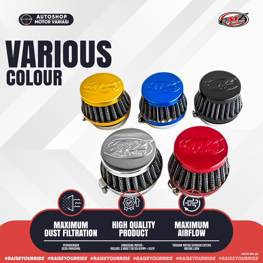 Filter MINI RACING Saring Udara Filter Motor MODEL MINI DIMETER 2.5 INCH Termasuk KARET 28/35/42 MM Universal MOTOR