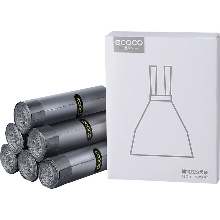 ECOCO Plastic Drawstring Trash Bag - 45x50 cm Isi 75 Lembar Plastik sampah dengan tali Pengikat Tas Kresek Sampah Dapur