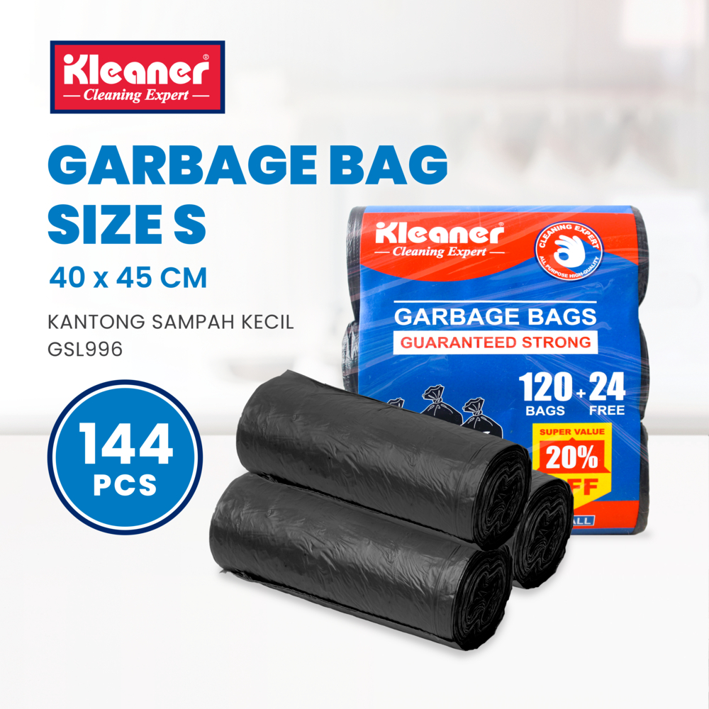 Kleaner Trash Bag HITAM 144 pcs - 12L /15L/ 20L (3roll) Kantong Sampah