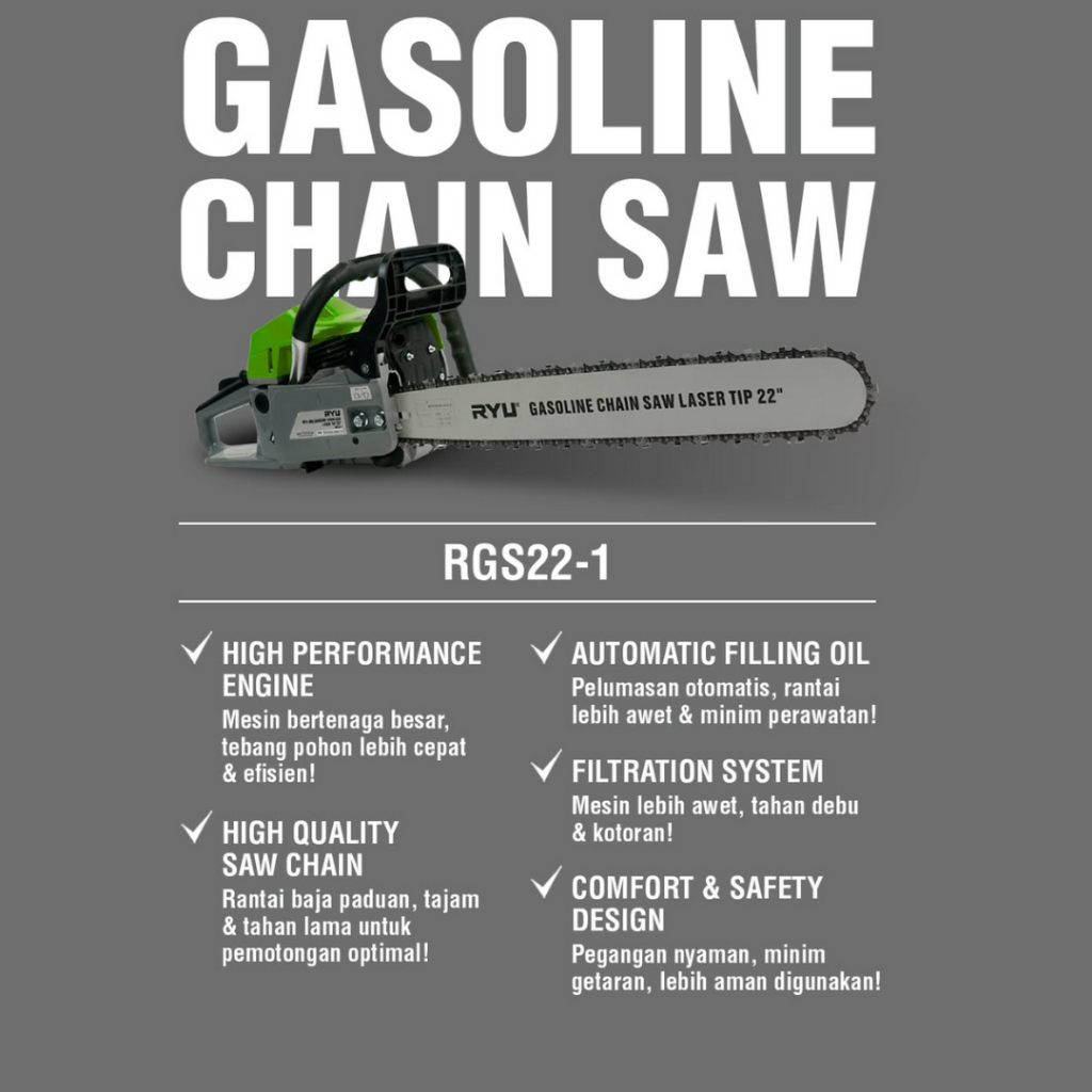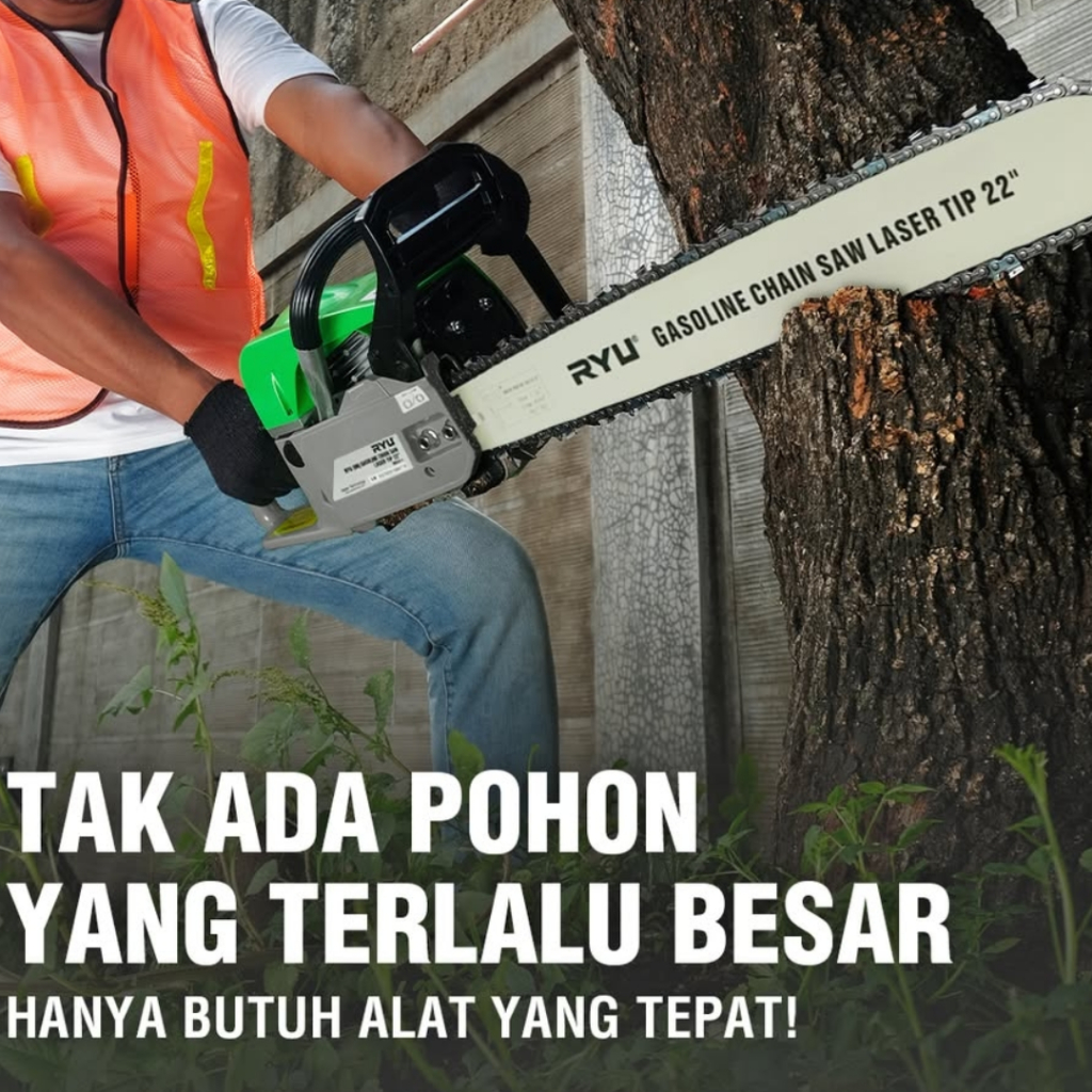 RYU PORTABLE REFFIlOLINE CHAIN SAW 22" 2 Tak BAR LASER TIP SENSO RGS 22-1 Mesin Gergaji P0T0NG Kayu Solar