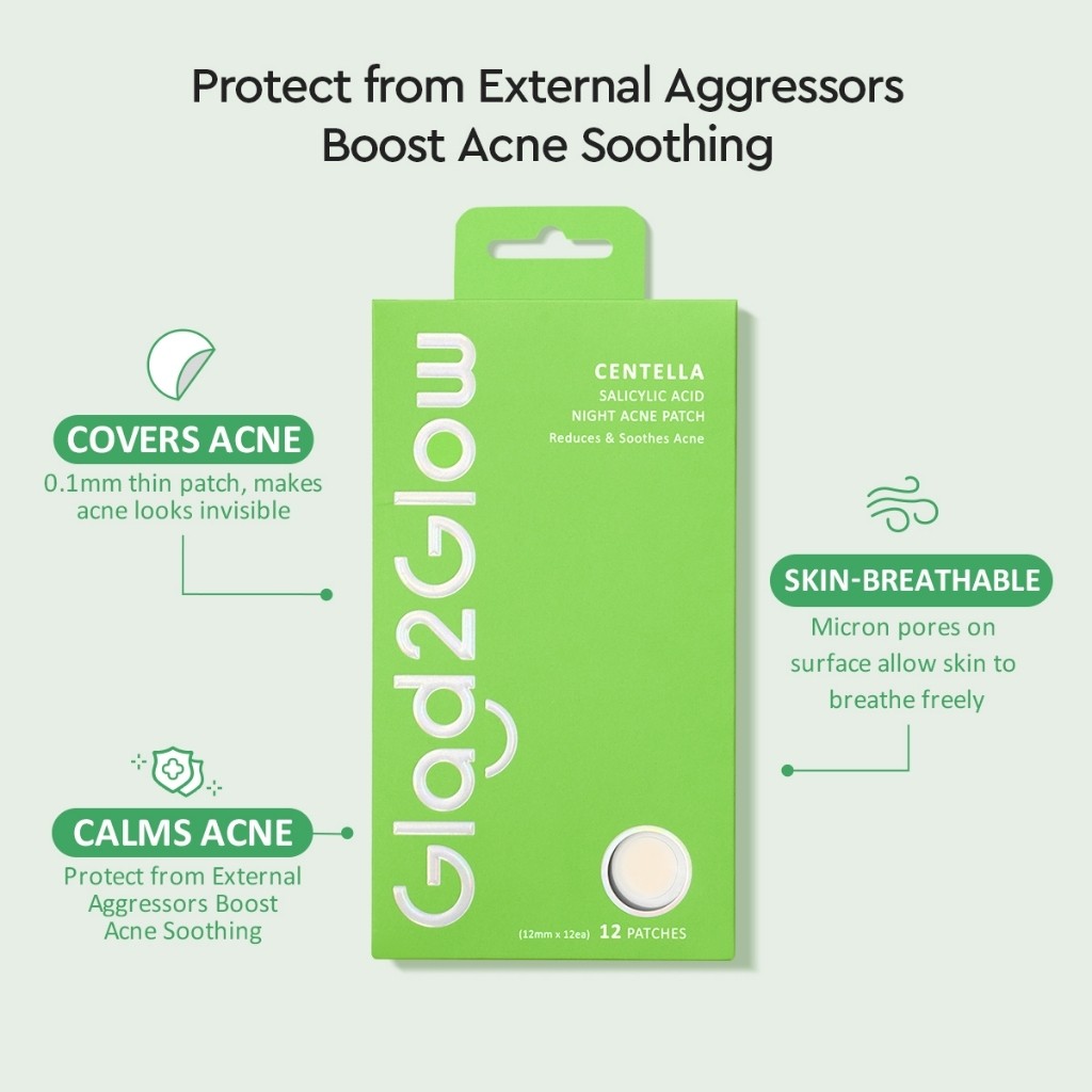 Glad2Glow Centella Salicylic Acid Spot Acne Patch Invisble Stiker Pimple Patch Day & Night Tempelan Jerawat Obat Jerawat