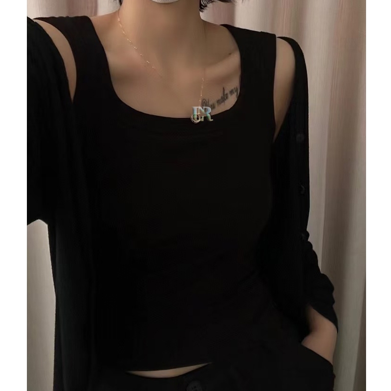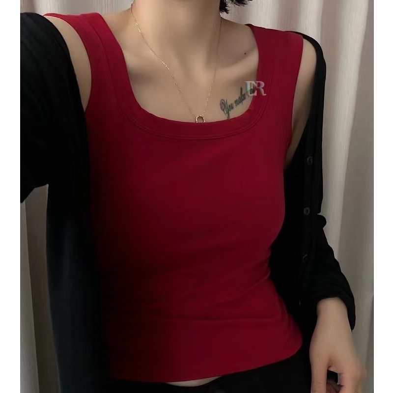 Lnr Shop Tanktop Bra With Cup Busa / Pad Bahan Cotton Adem Halus Lembut Atasan Wanita Tanpa Lengan Ketek Square Neck Cro