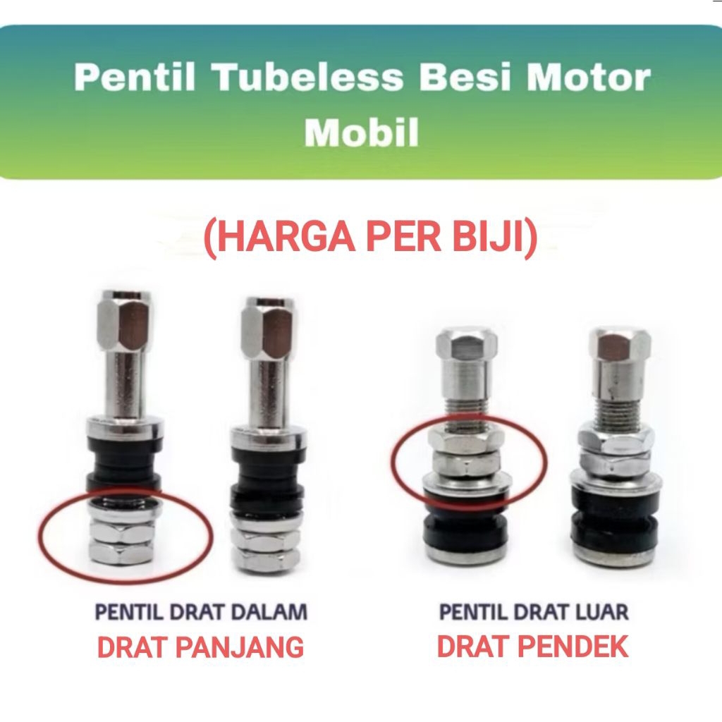 TUBELESS TIRE VALVE panjang/pendek/drat luar/drat dalam pentil tubeless besi tubles motor mobil tubeles karet tutup