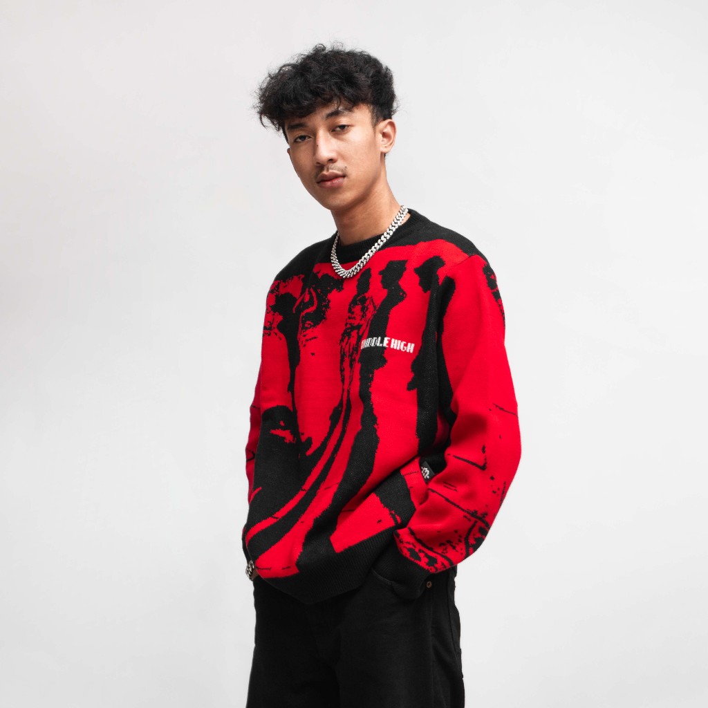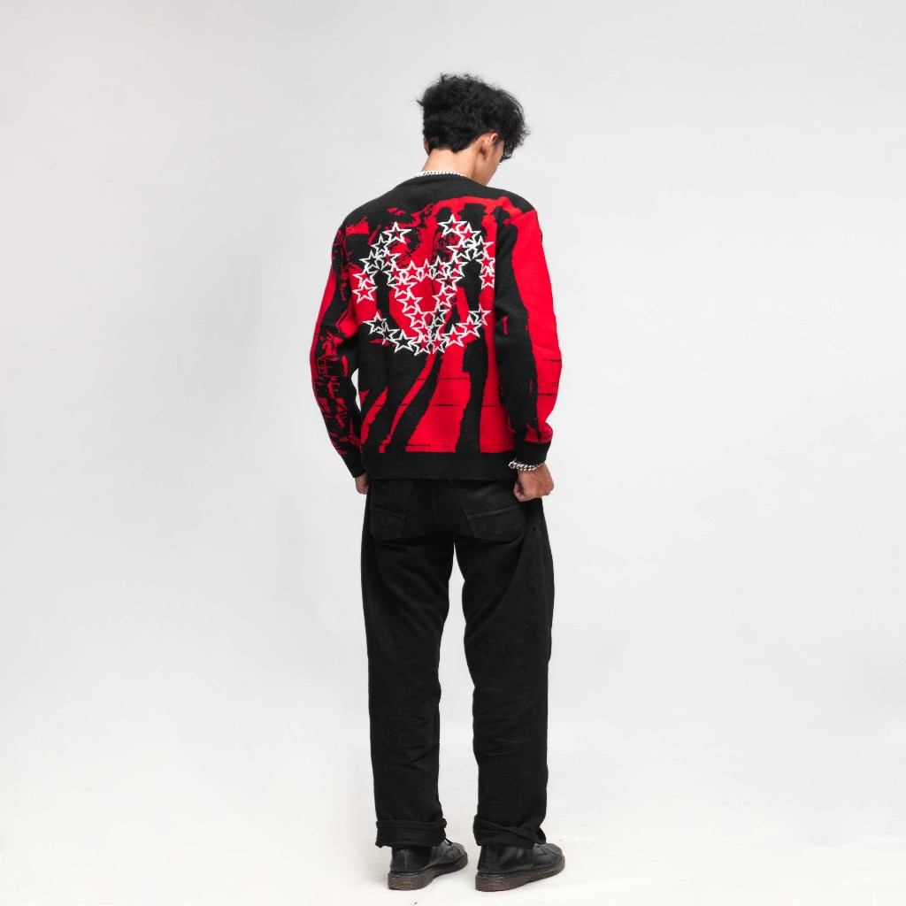 Gratis Ongkir Middlehigh Sweater Cardigan Knitwear Red Psycho Sweater Rajut Pria Crewneck Pria Keren