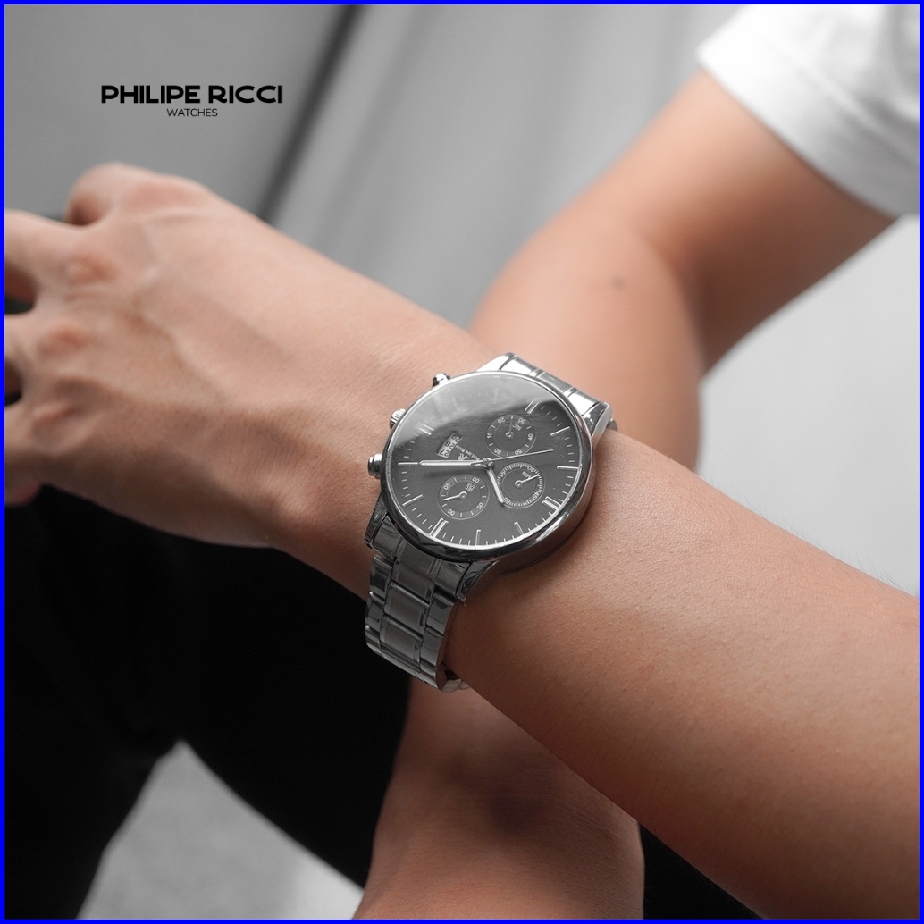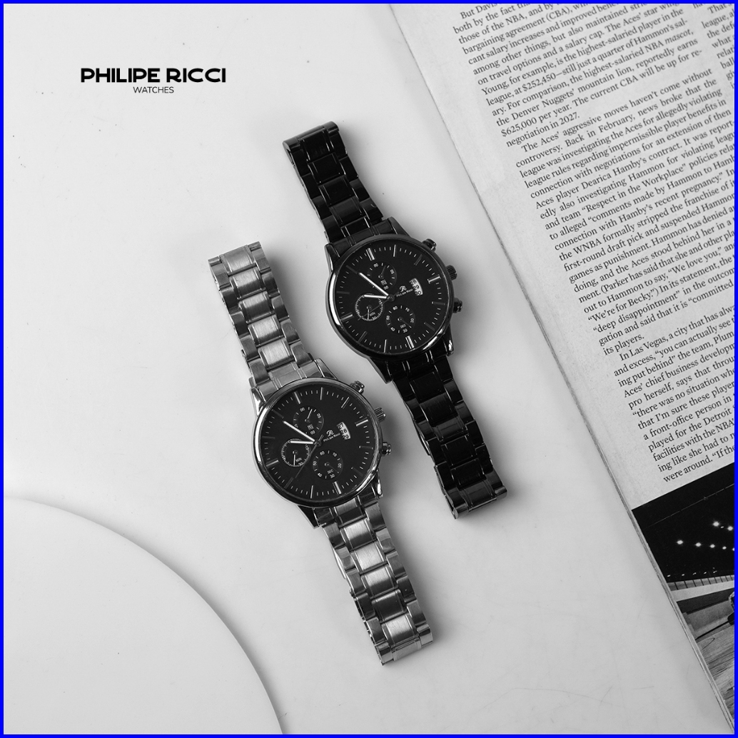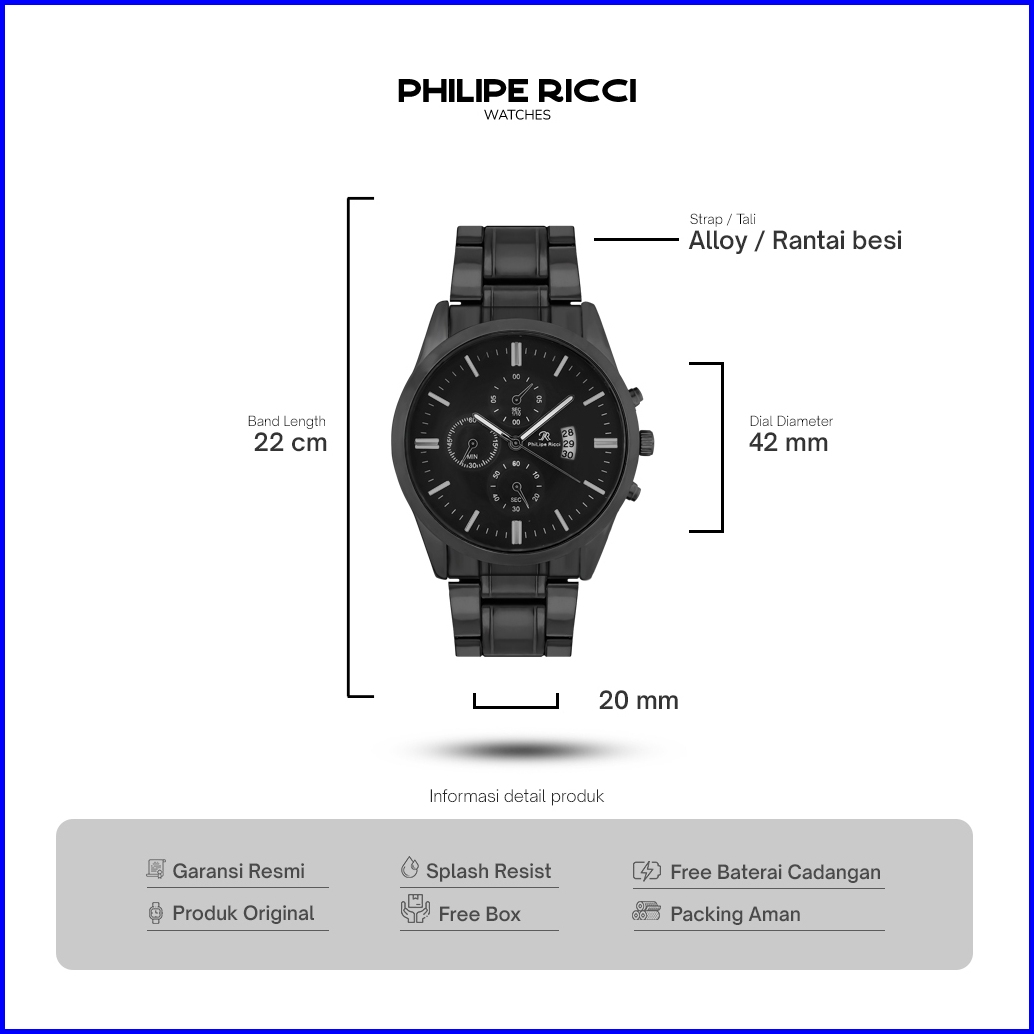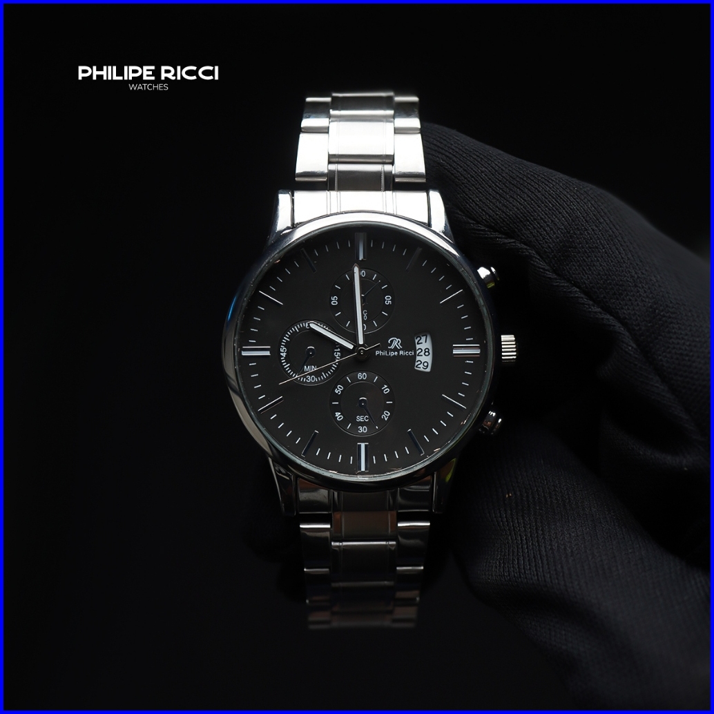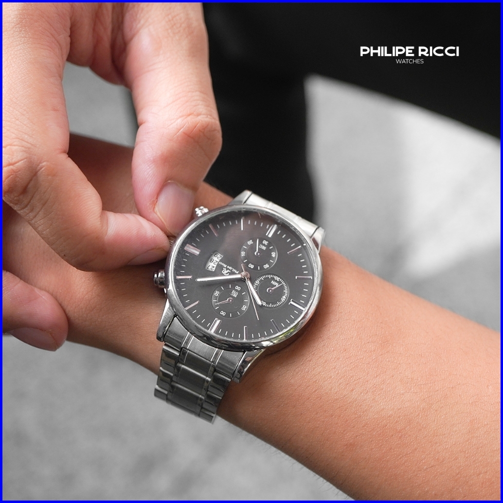 Philipe Ricci Jam Tangan Pria Rantai Analog Quartz Trendy Hitam Ori Simple 7352 Men Watches Free Box