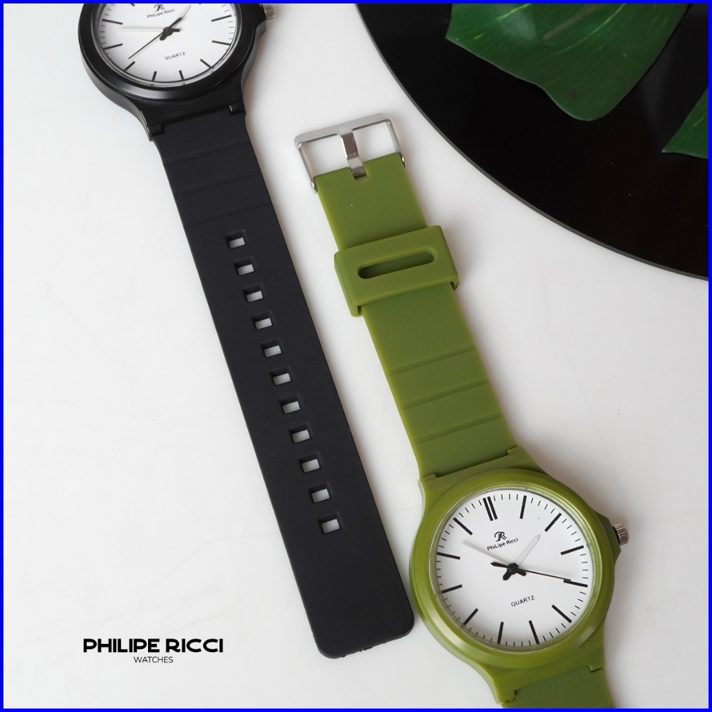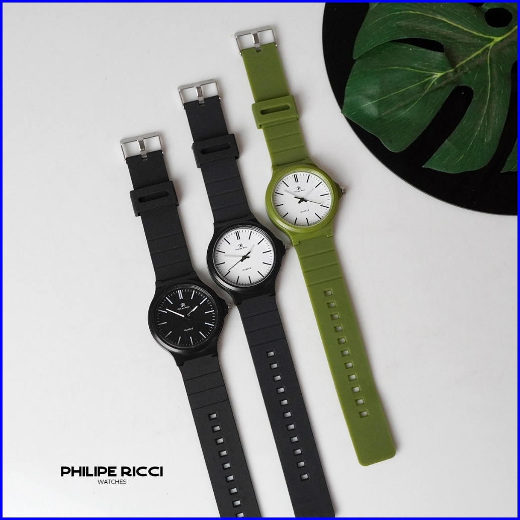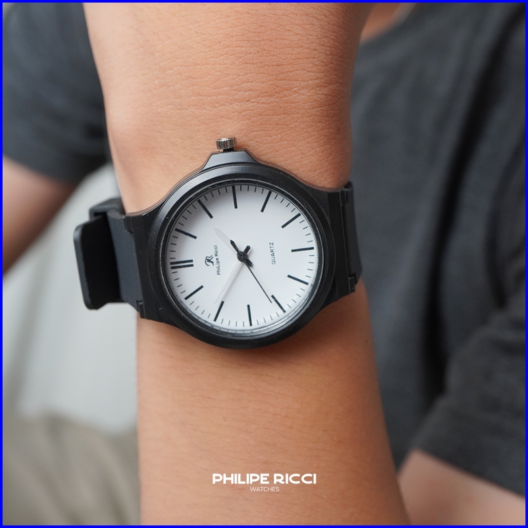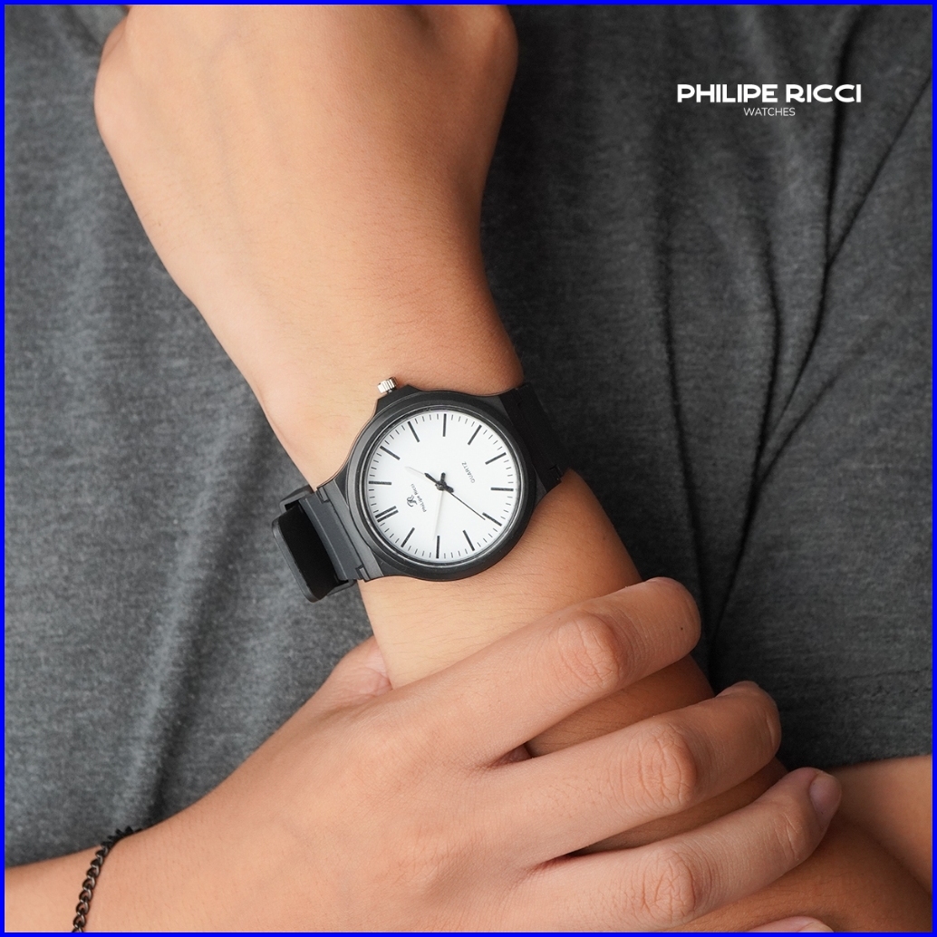 Philipe Ricci Jam Tangan Pria Karet Hitam Tipis Simple Keren Analog Ori 88a Men Watches Free Box