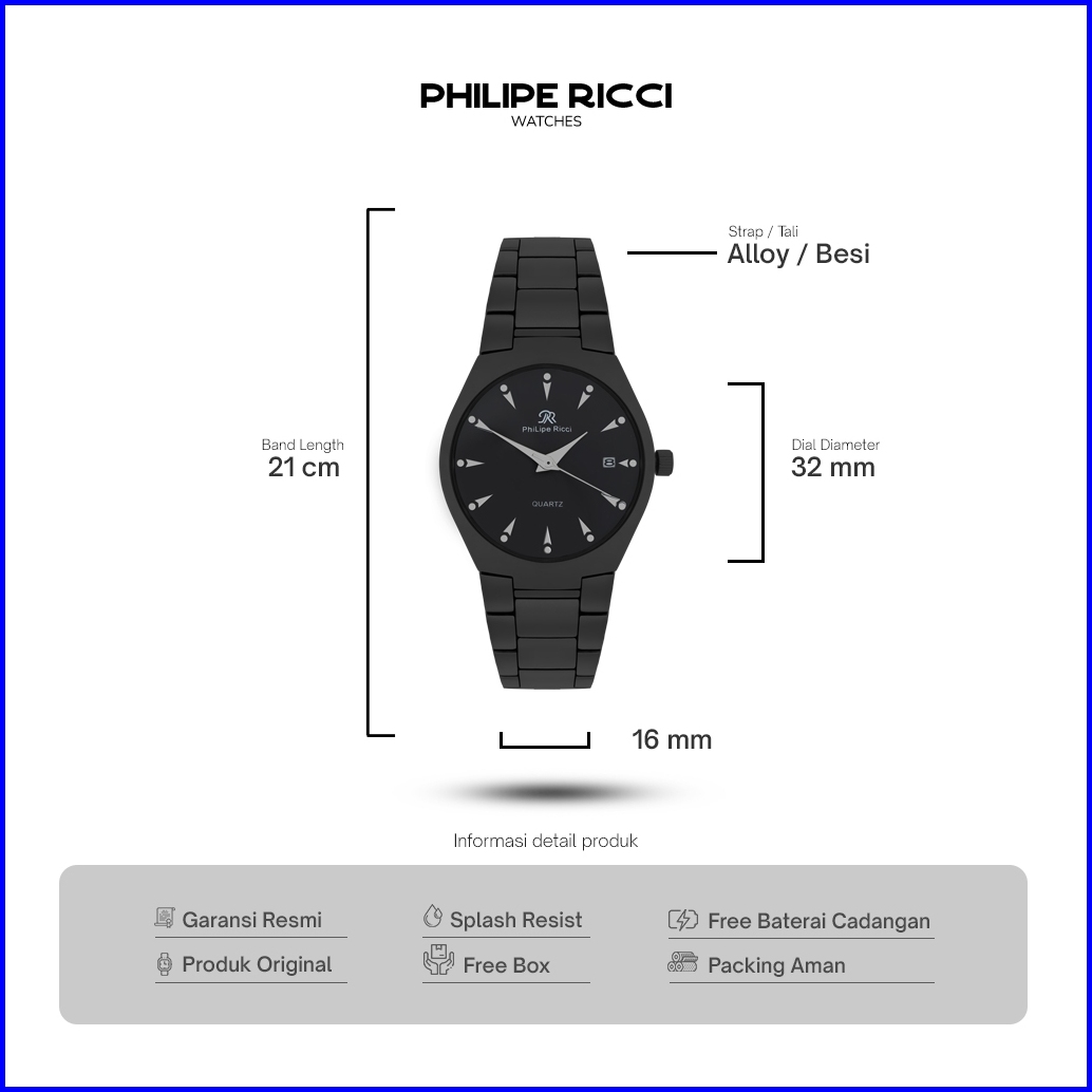 Philipe Ricci Jam Tangan Wanita Rantai Hitam Kecil Simple 100 Ori Terbaru Stylish 7597 Free Box