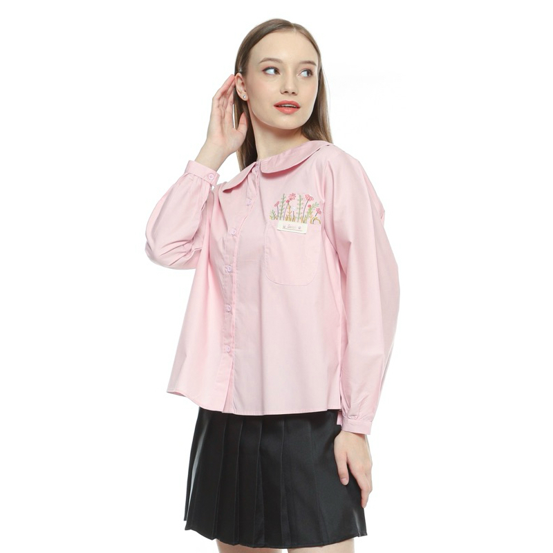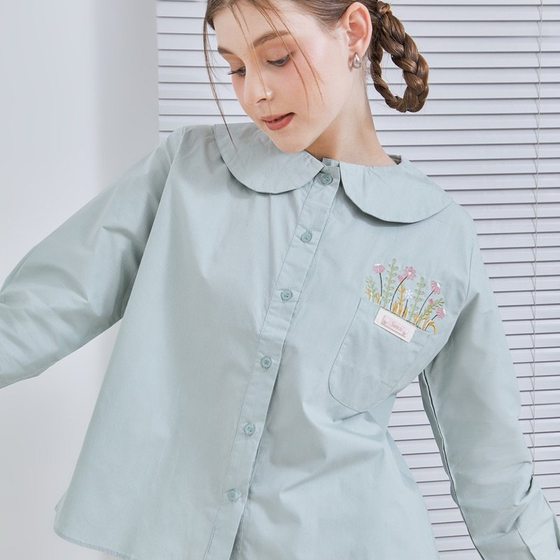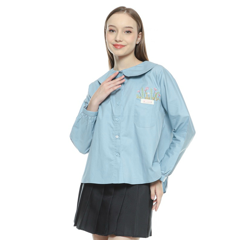 [ Senchi ] - Koharu Flower Embroidered Shirt / Atasan Kemeja Bordir Bunga Lucu / Atasan Kemeja Style Jepang Korea / Keme