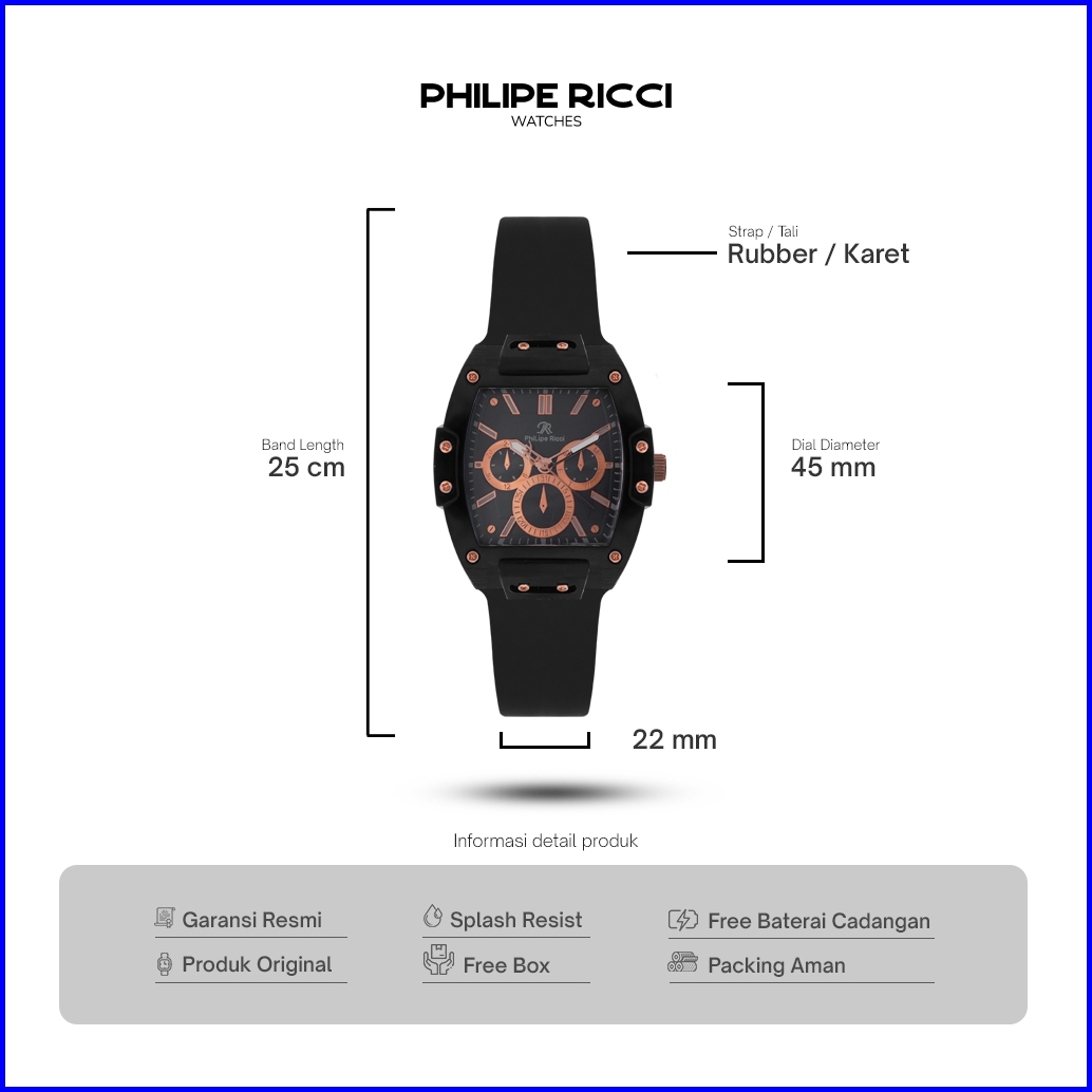 Philipe Ricci Jam Tangan Pria Karet Kece 100 Original Modern Terbaru 1005 Men Watches Free Baterai
