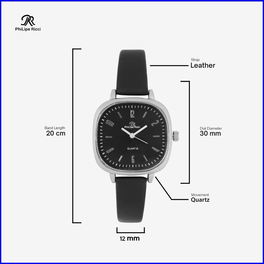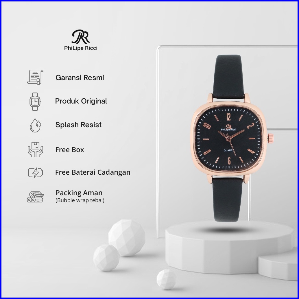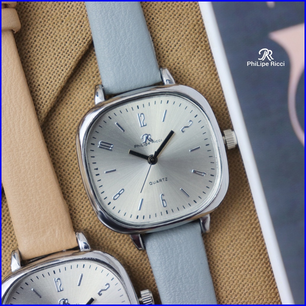 Philipe Ricci Jam Tangan Wanita Kotak Strap Tali Kulit Kecil Analog Imut Modern Terbaru Original 4232 Free Box