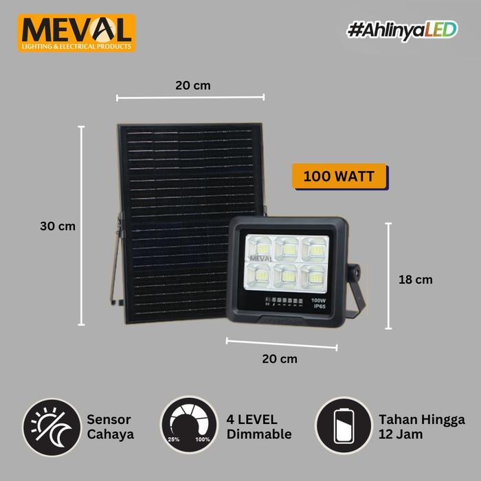 Meval Lampu Sorot Led Tenaga Surya Flood Light Solar Panel + Sensor - 100W