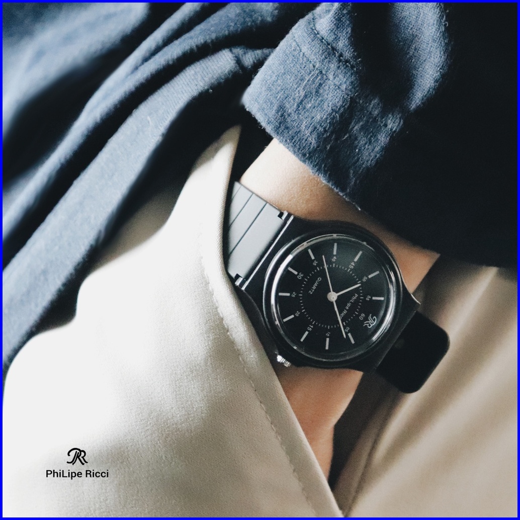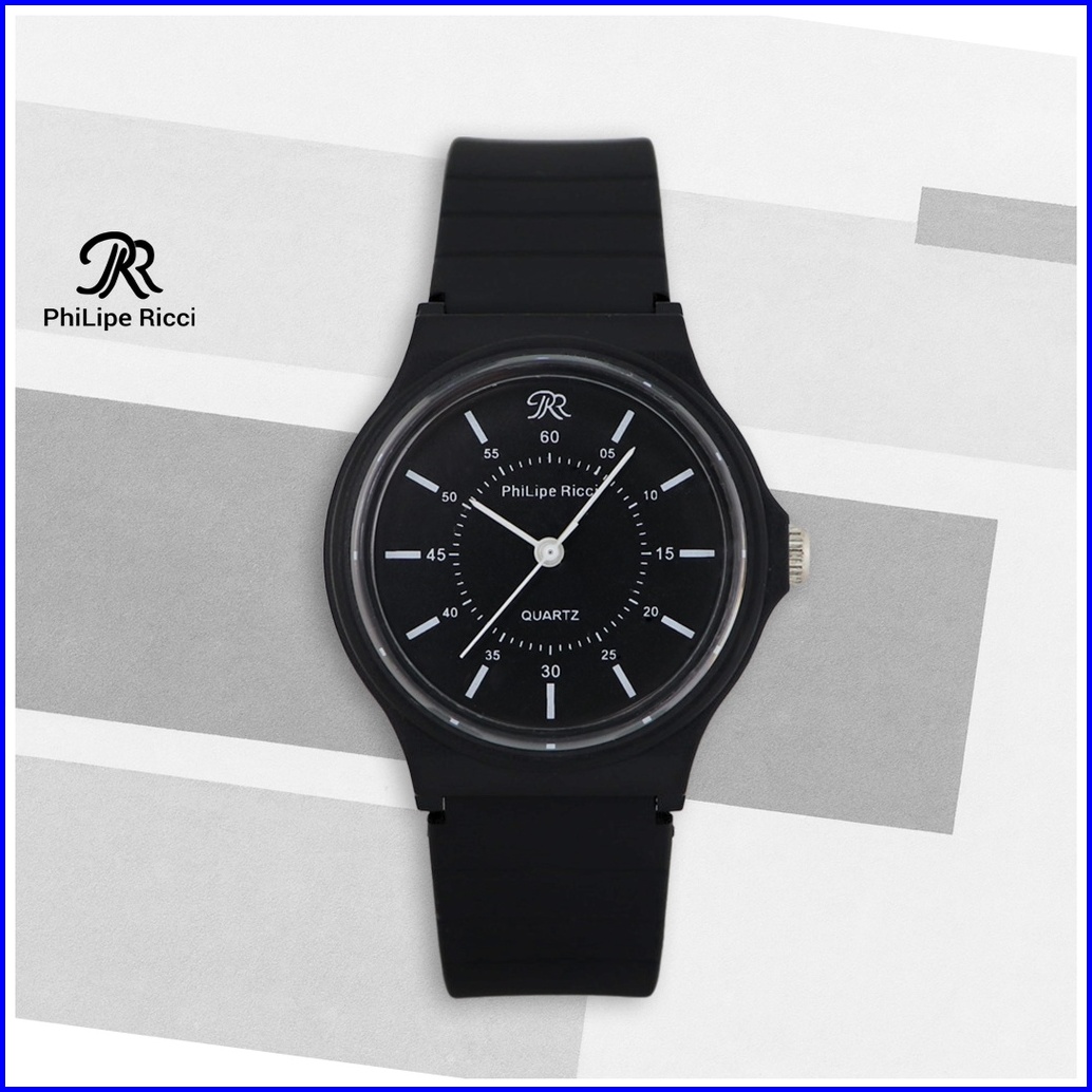 Philipe Ricci Jam Tangan Wanita Kecil Hitam Unisex Analog Tahan Air 6221g Water Resist 3atm Watch Free Box