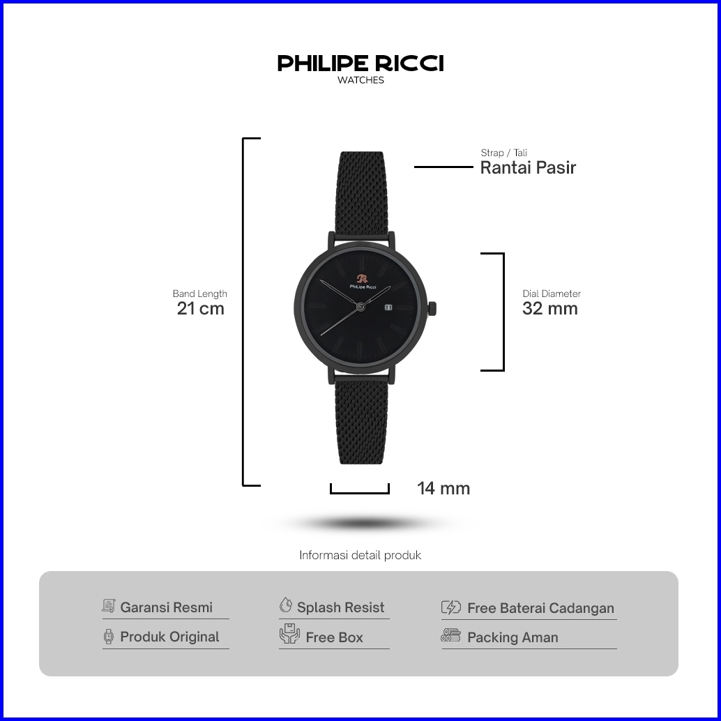 Philipe Ricci Jam Tangan Wanita Rantai Pasir Rose Simple 100 Ori Minimalis 7448 Women Watches