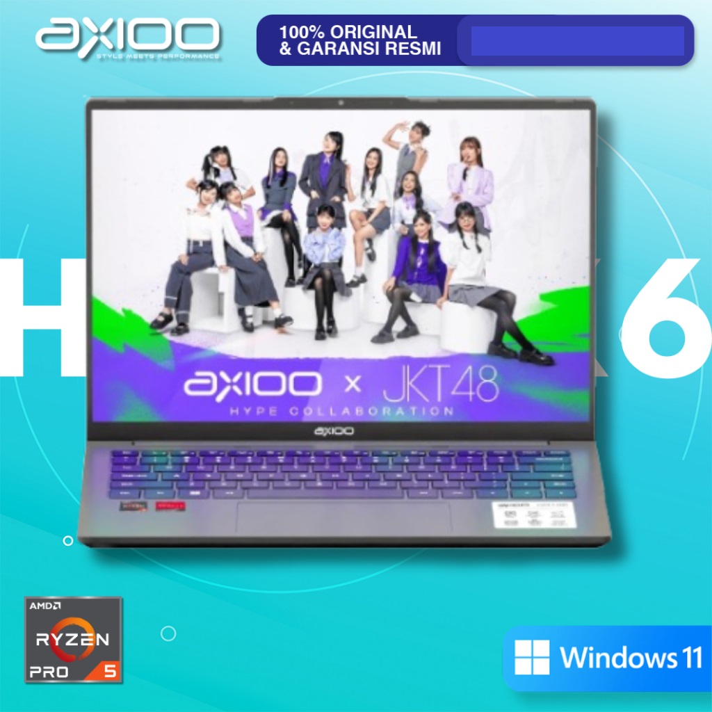 laptop axioo Hype 5 AMD X6 RYZEN 5 6600H RAM 16GB SSD 512GB W11 RESMI ORIGINAL