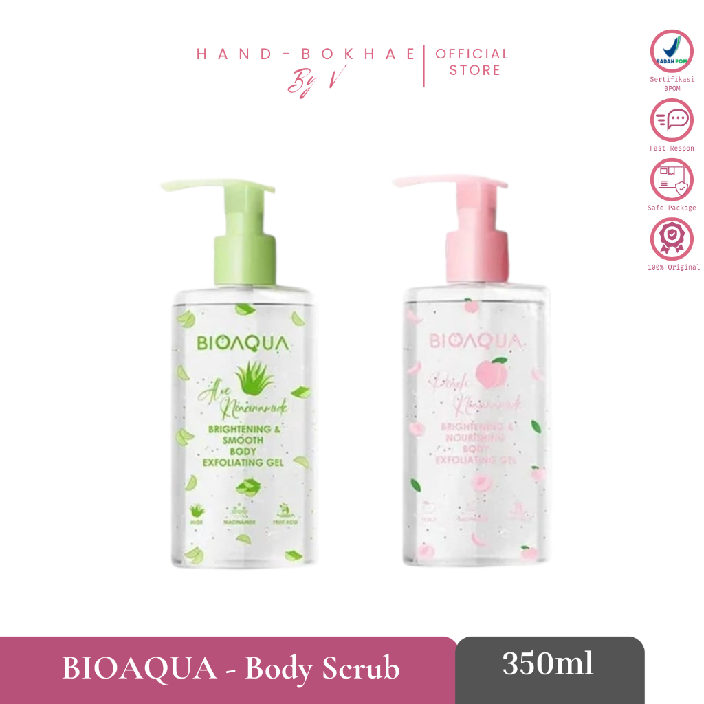 BIOAQUA Body Scrub 350ml Scrub Aloe & Peach Niacinamide untuk Kulit Cerah
