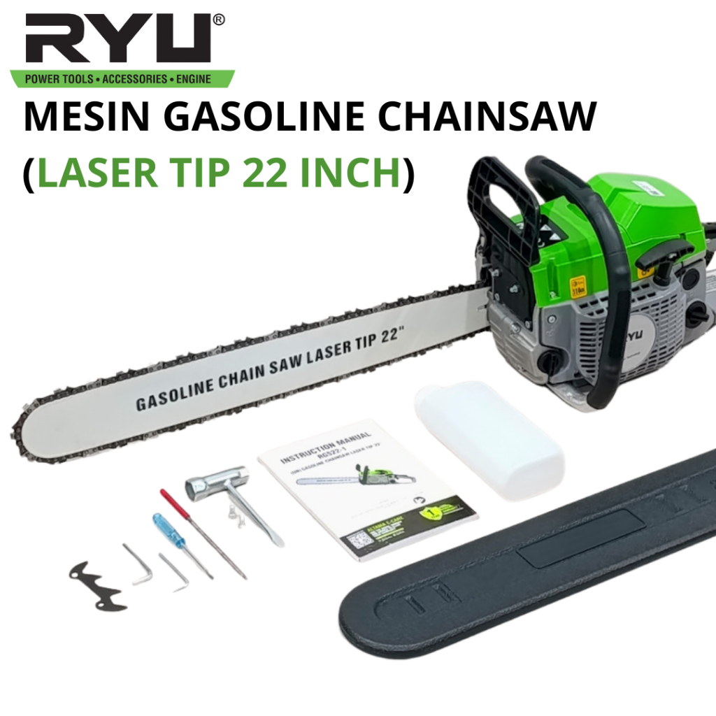 RYU PORTABLE REFFIlOLINE CHAIN SAW 22" 2 Tak BAR LASER TIP SENSO RGS 22-1 Mesin Gergaji P0T0NG Kayu Solar