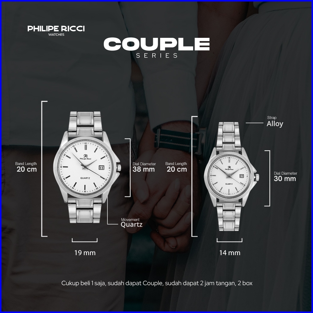 Philipe Ricci Jam Tangan Couple Rantai Besi Pria Wanita Terbaru Elegan 7501 Free Box