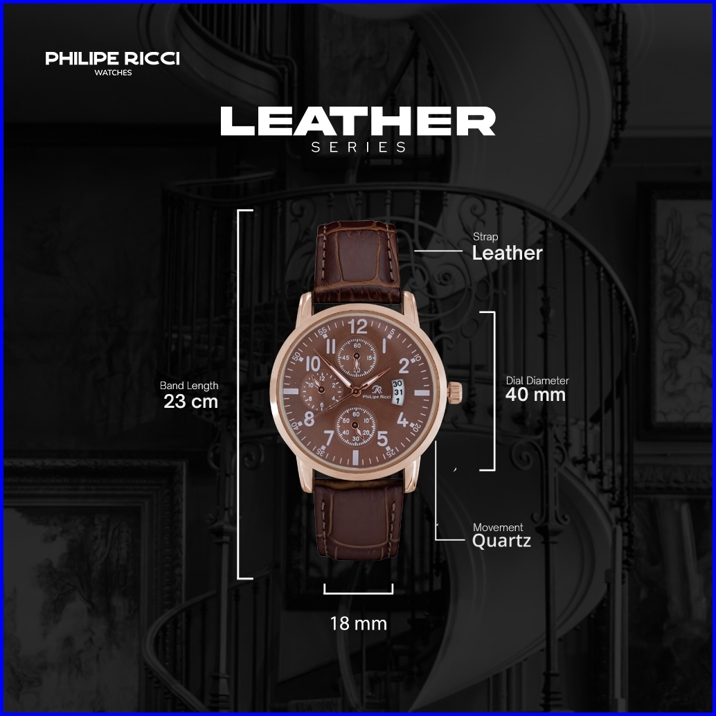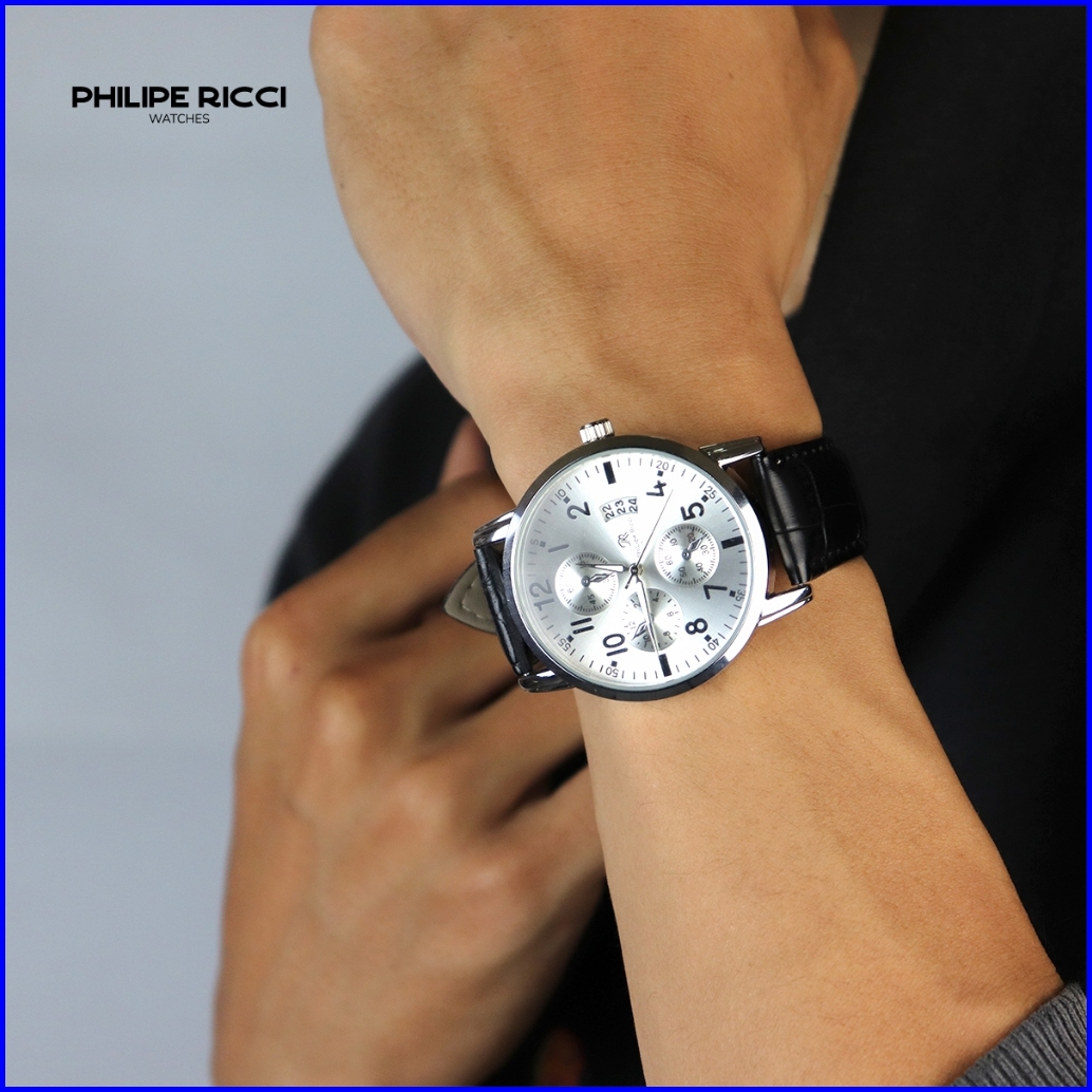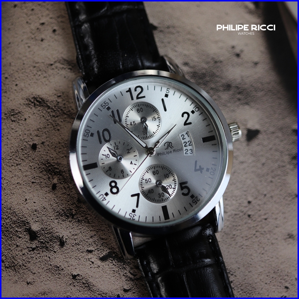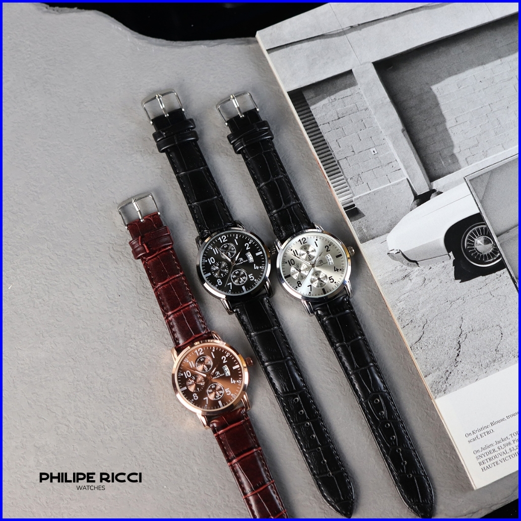 Philipe Ricci Jam Tangan Pria Kulit Terbaru Analog Quartz Strap Leather Dial Bulat Besar Gaya Modern Terbaru 4234 Man Wa