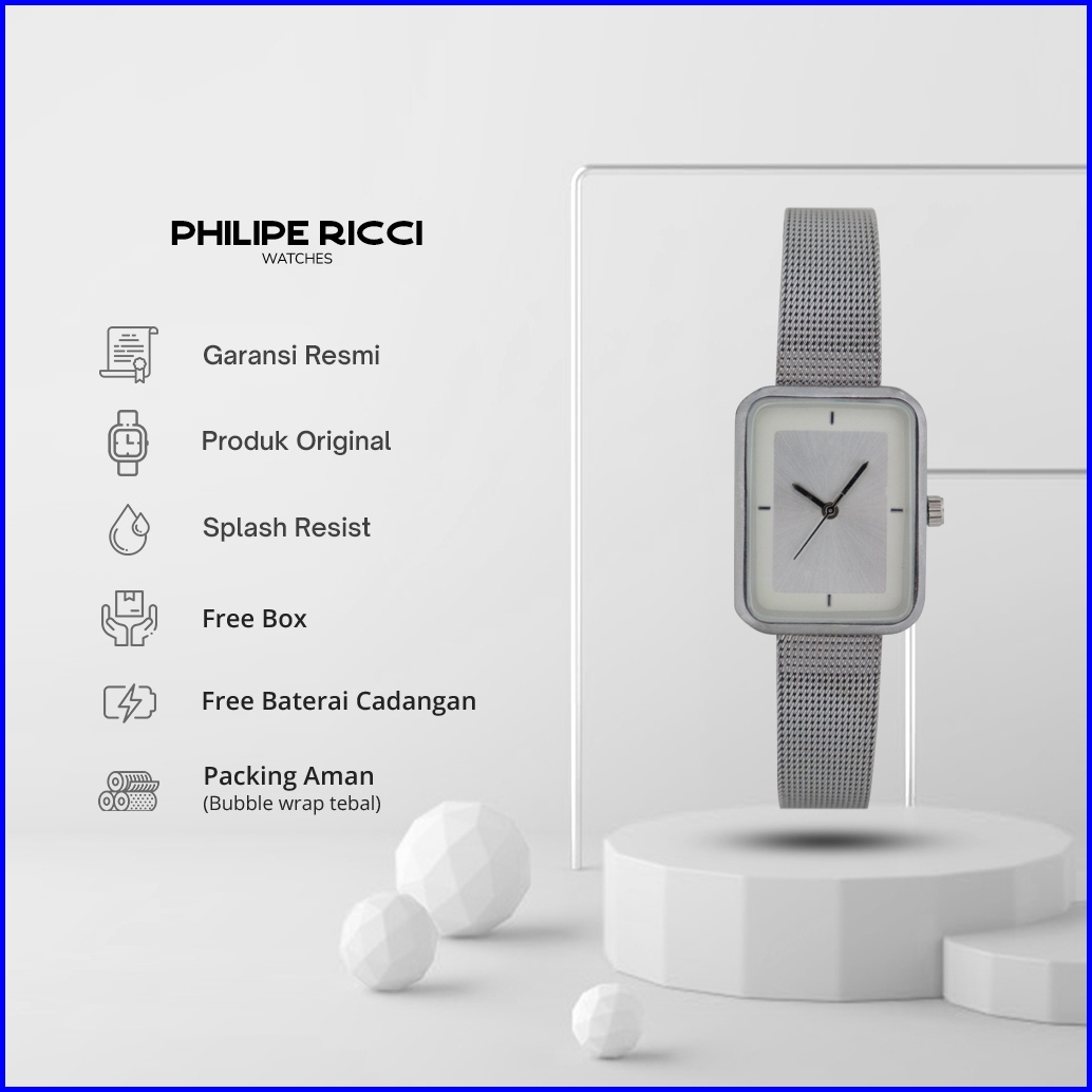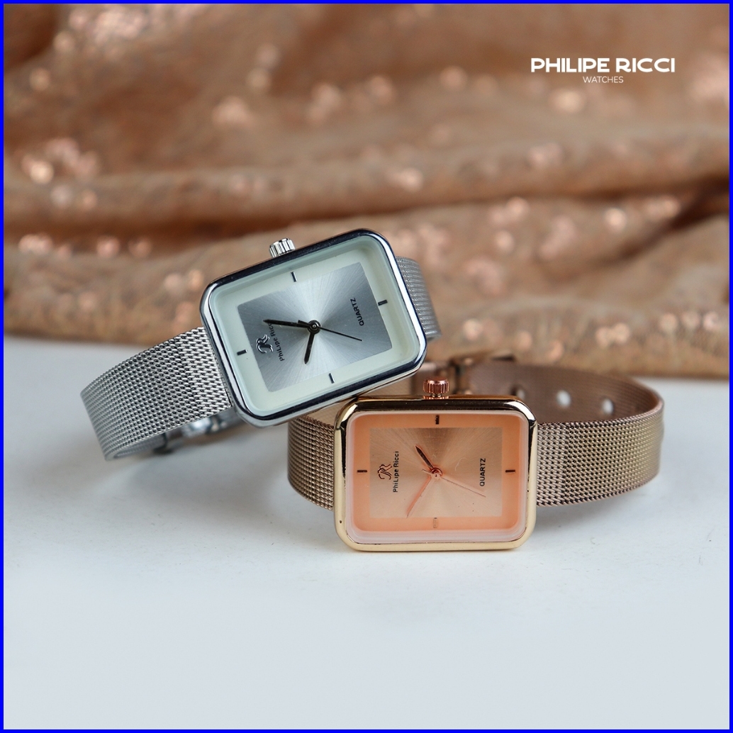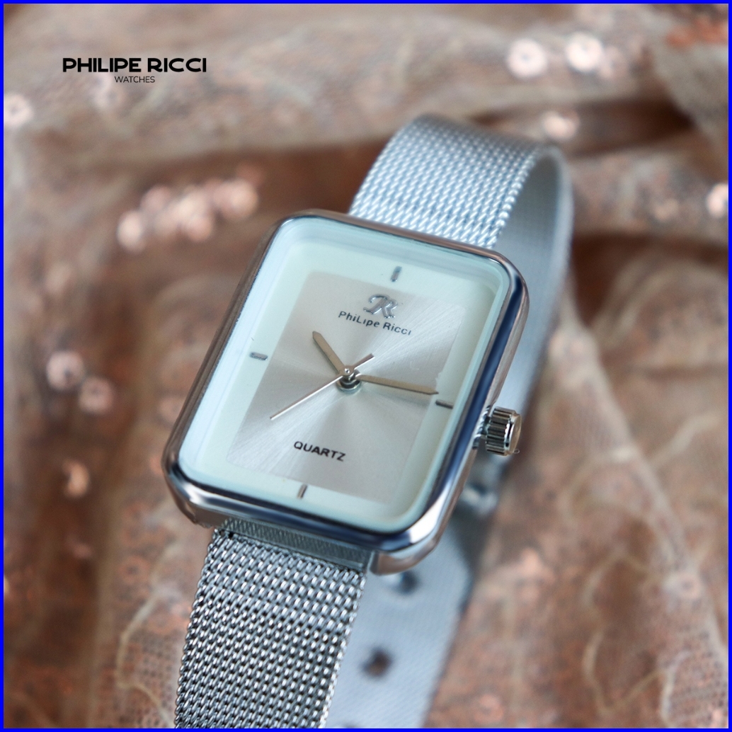 Philipe Ricci Jam Tangan Wanita Kecil Analog Strap Tali Rantai Pasir Diameter Kotak Desain Mewah Model Elegan Mini Terba