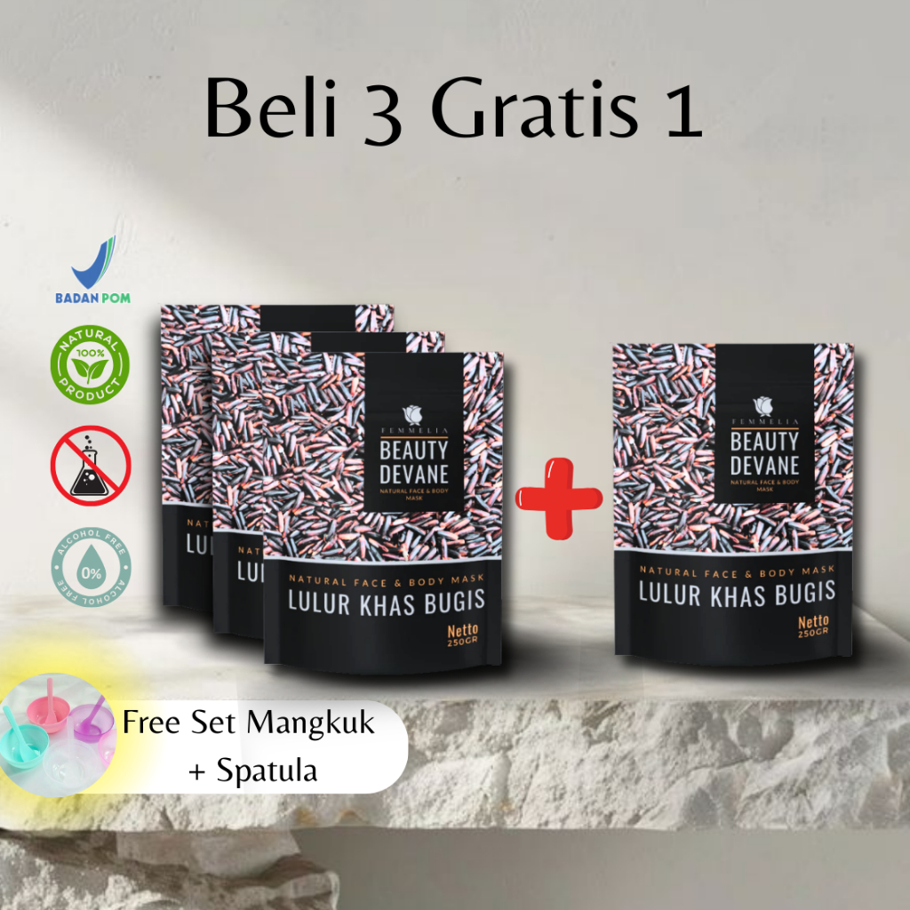 PROMO 4 Pcs Lulur Khas Bugis Free Set Mangkuk | Lulur mencerahkan | Lulur Hitam | Femmelia by Beauty Devane