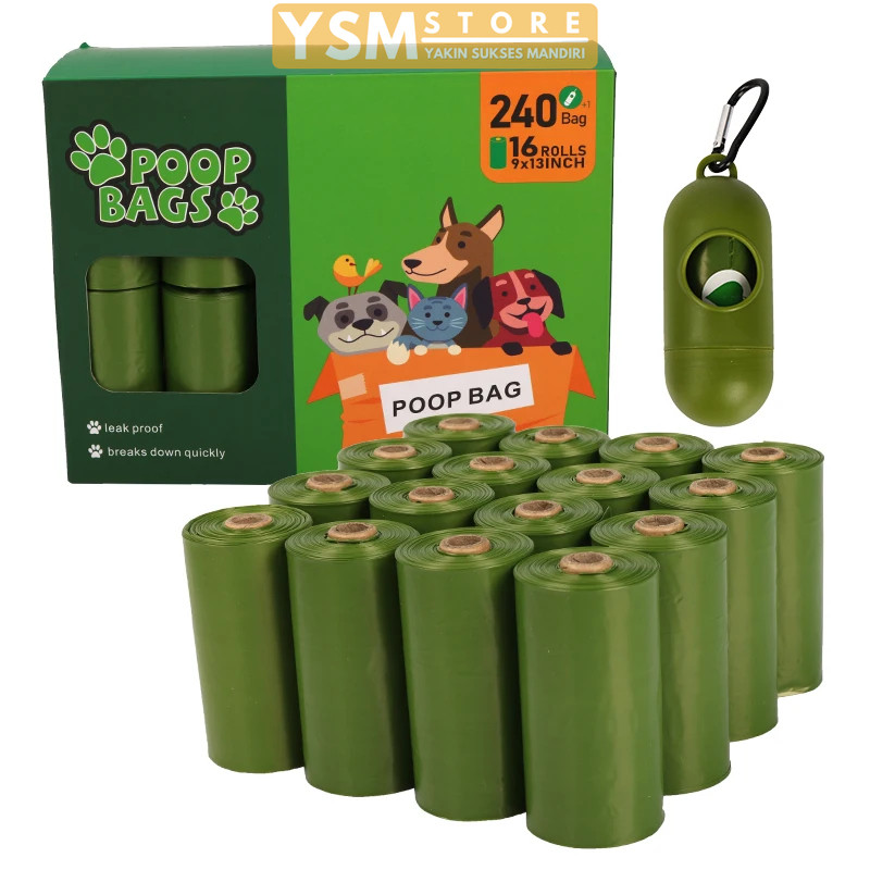 16 Roll Dog Poop Bag Kantong Sampah Plastik Pup Kotoran Anjing Kucing Ramah Lingkungan