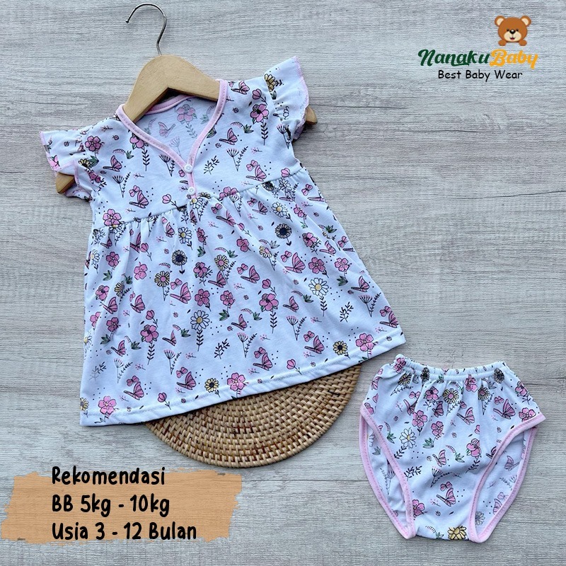Setelan Baju Bayi Piyama Bayi Perempuan Dress Motif Red Rose Usia 3-12 Bulan