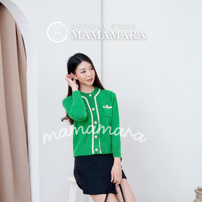 Mamamara - Cardigan Wol Rajut Lis Full Mutiara Outer Mewah Elegant Baju Kancing Katun Panjang Kardigan Tebal - Putih