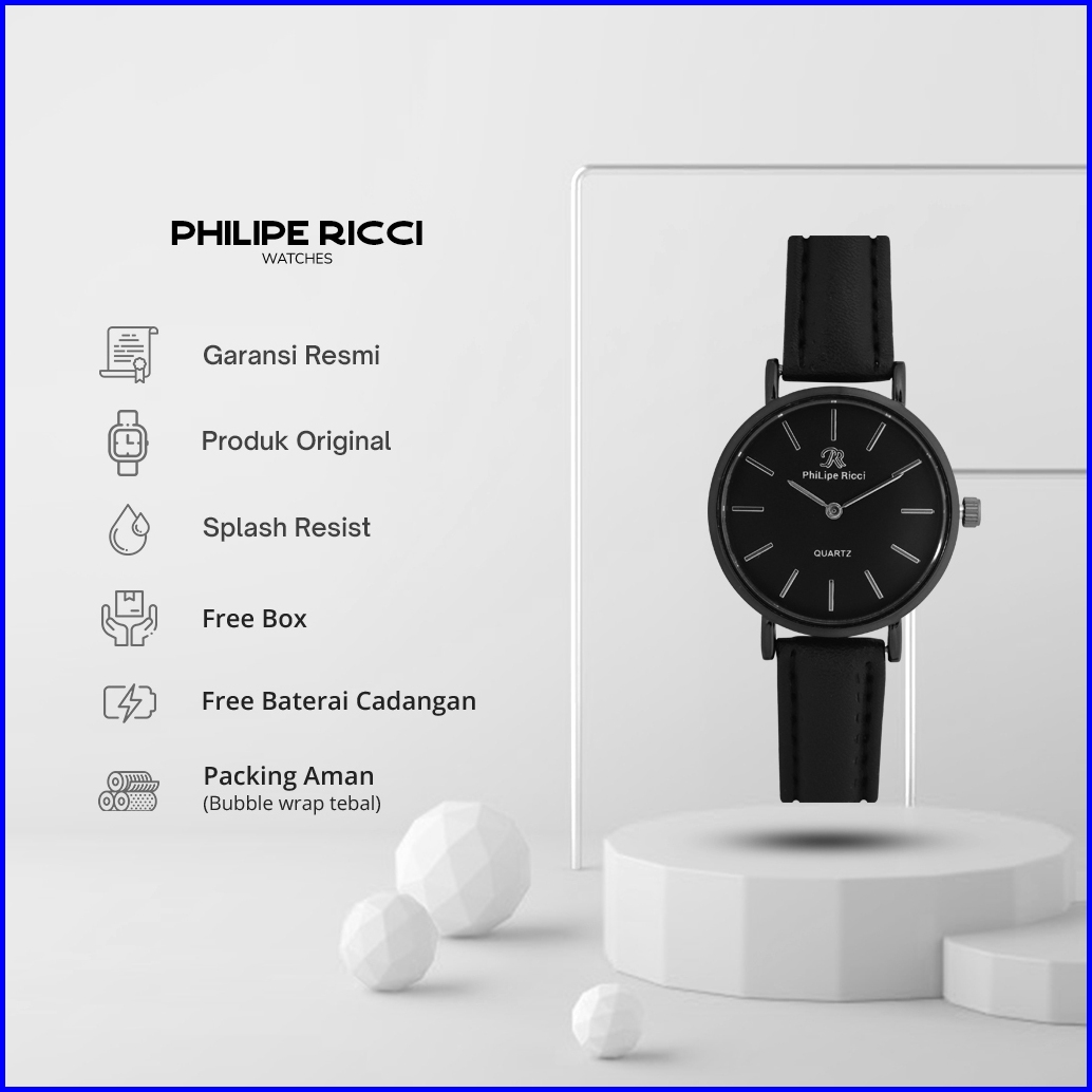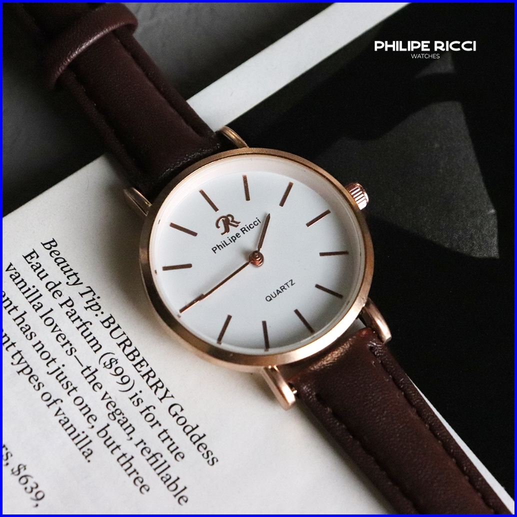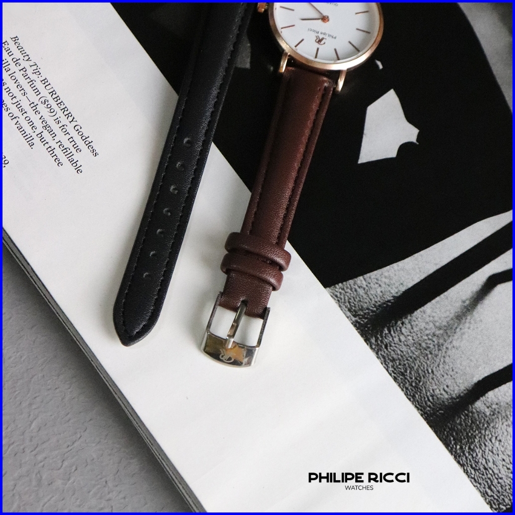 Philipe Ricci Jam Tangan Wanita Tipis 100 Original Kulit Kecil Fashion Simple Cewek Quartz Analog Dial Bulat Strap Tali