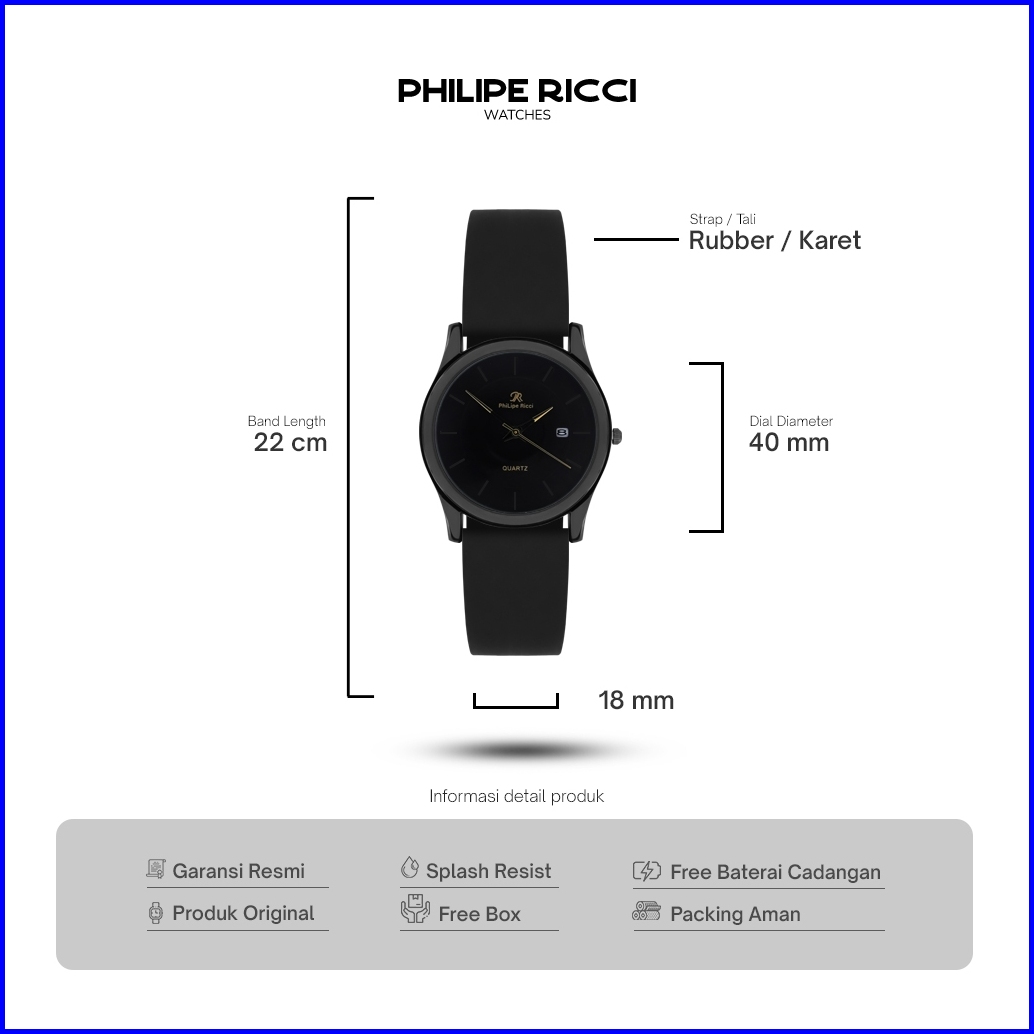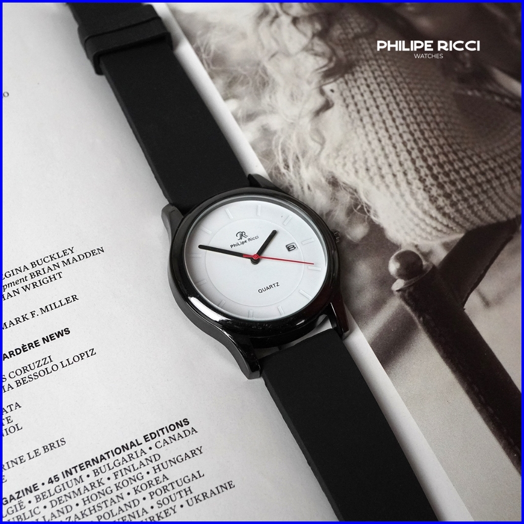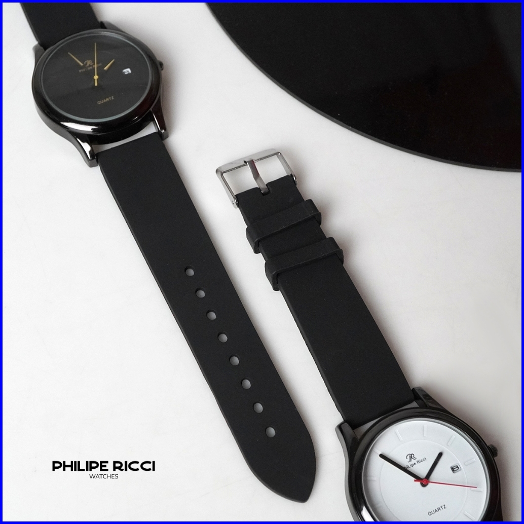 Philipe Ricci Jam Tangan Pria Karet Hitam Simple Keren Terbaru Original 100 7619 Free Baterai