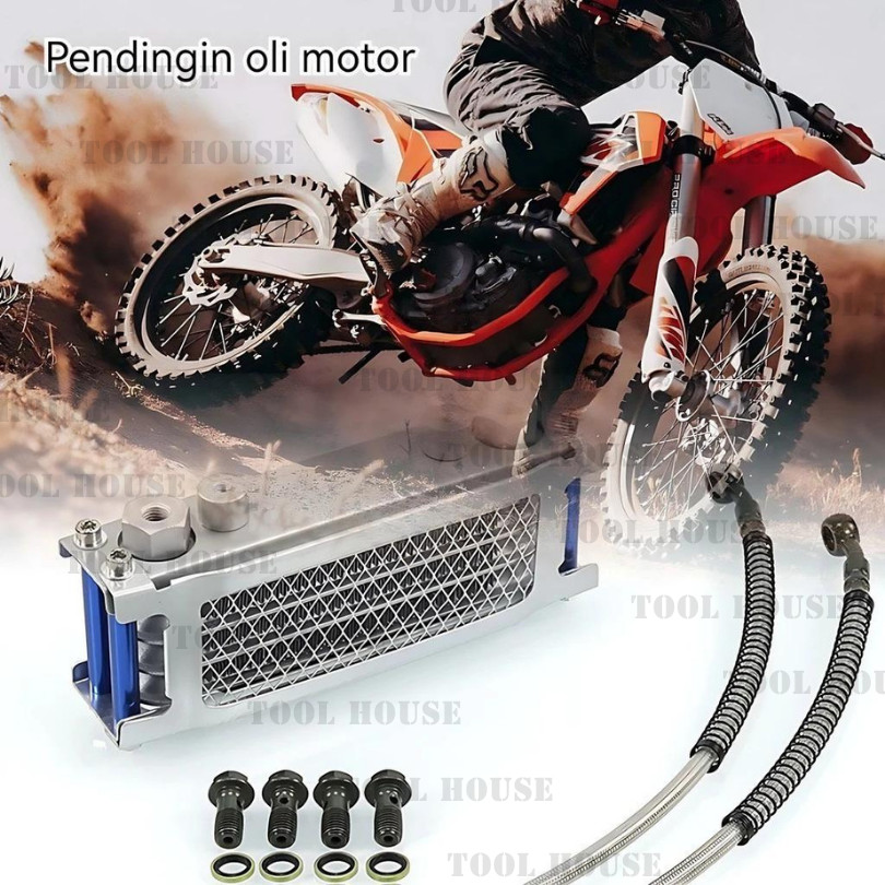 Tool House [Garansi Toko 1 Tahun] Universal Oil Cooler Engine Transmission System with Fitting Accessories Cooling Radia