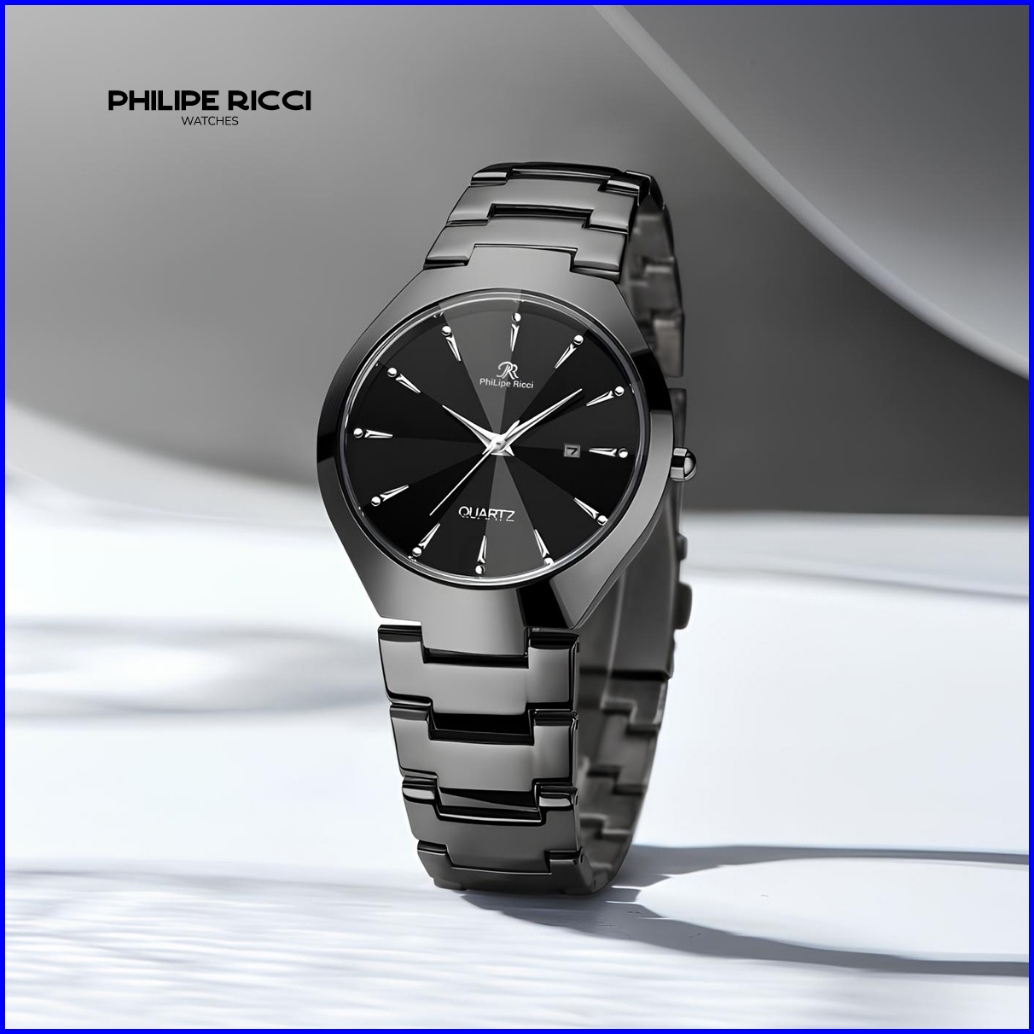 Philipe Ricci Jam Tangan Pria Rantai Analog Hitam Tipis 100 Ori Keren 7597 Men Watches Free Baterai