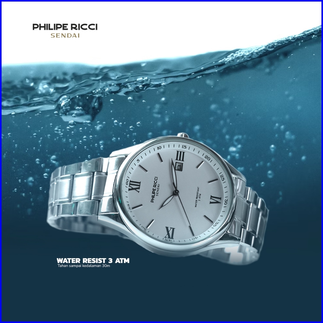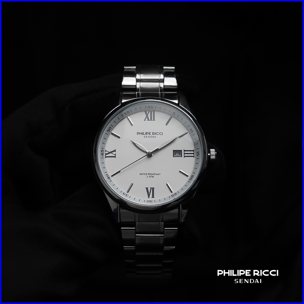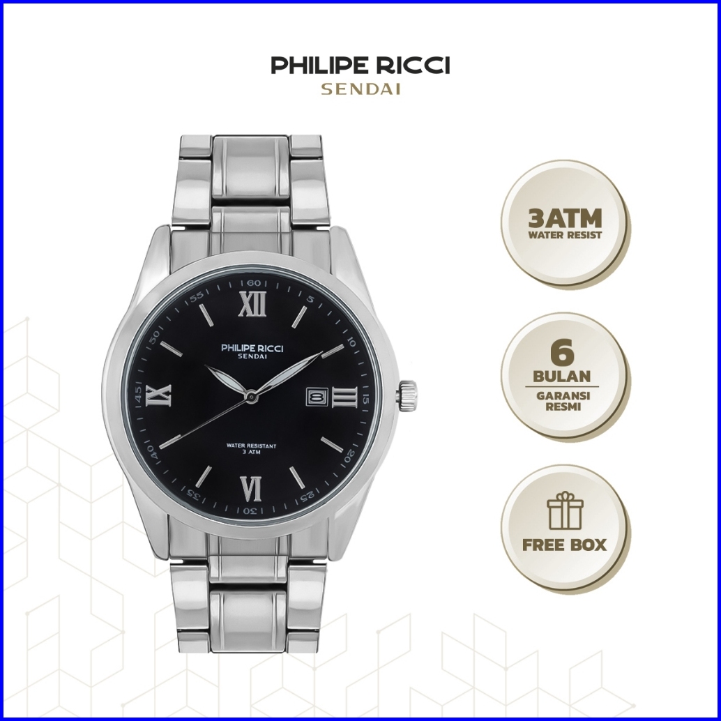 Philipe Ricci Sendai Jam Tangan Pria Rantai 100 Original Simple Terbaru Stainless Steel 6343 Free Box