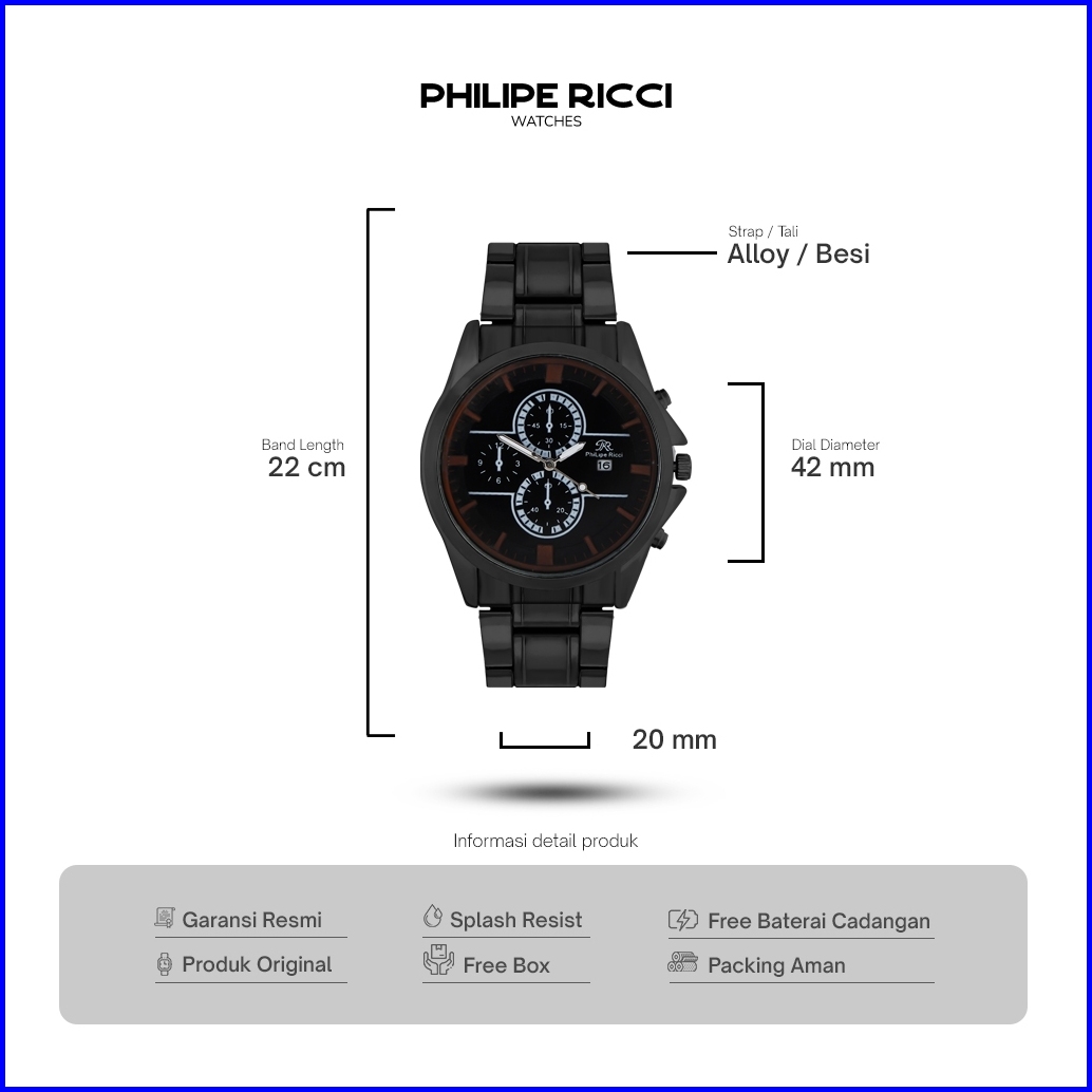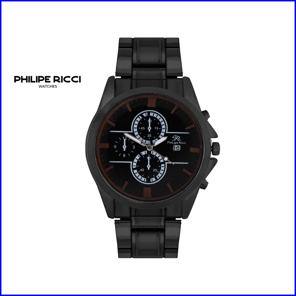 Philipe Ricci Jam Tangan Pria Rantai Hitam Keren Ori 100 Terbaru Simple 5635 Men Watch Free Box
