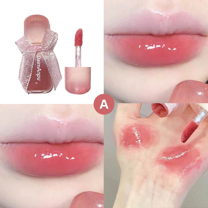 [] DAIMANPU Lip gloss Iced Tea Lip glaze glass Jelly Tint Lipstik Glossy Water Mirror Lip Glaze Moirturizing