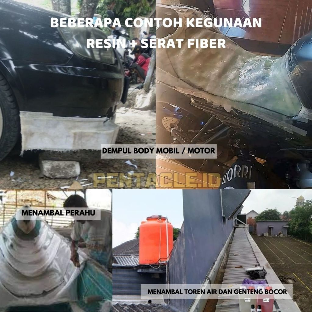 PAKET RESIN 1000gr Bening Merah 1L Bundle Hemat Katalis Mat Jushi Serat Fiber Talc Bahan Tambal Genteng Bocor Talang Tan