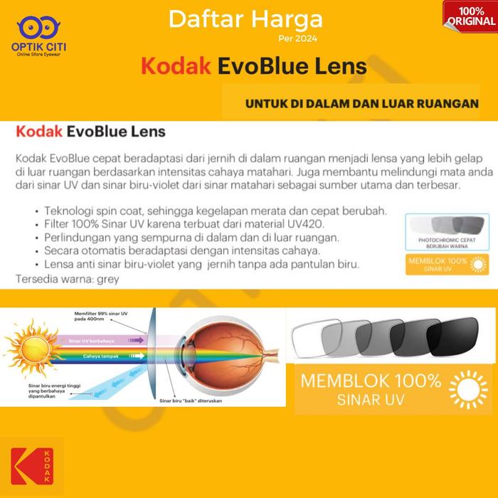 Kacamata Pria Wanita Lensa Kacamata Minus Bluechromic Photochromic Blueray Kodak Lens Evoblue Index
