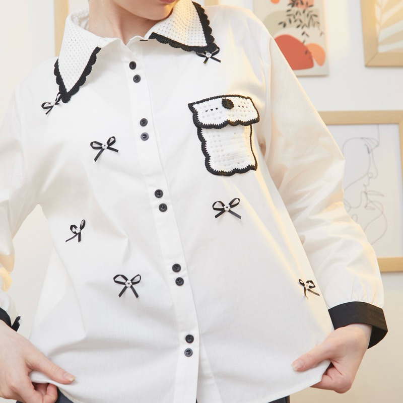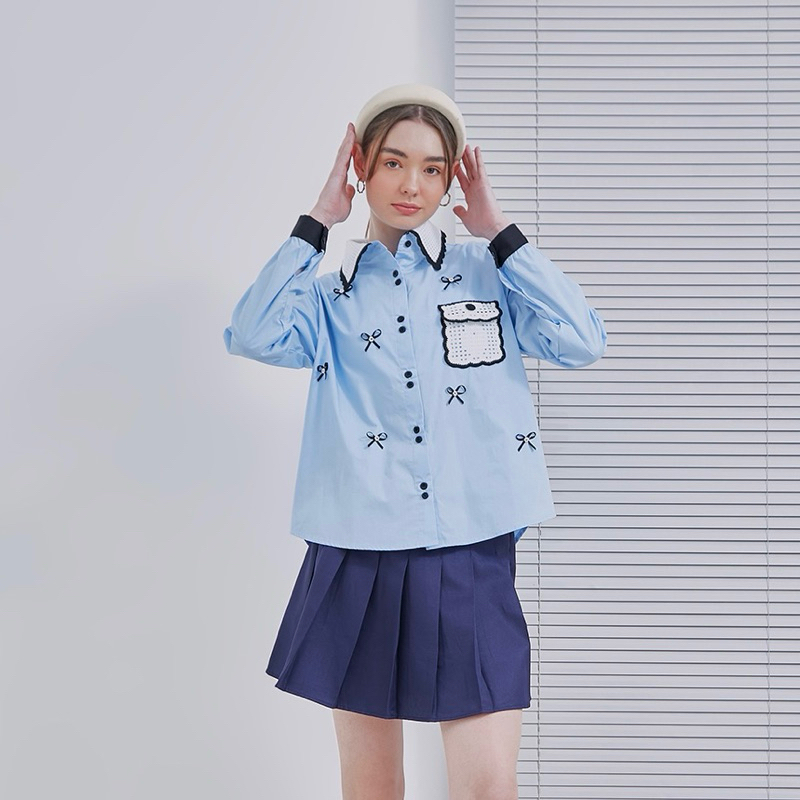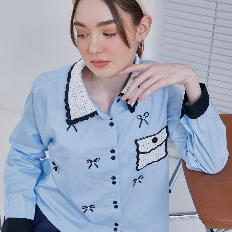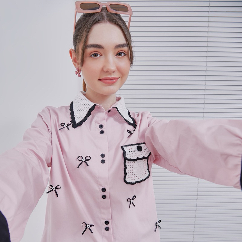 [ Senchi ] - Ririi Ribbon Lace Shirt / Kemeja Renda Pita Lucu / Atasan Kemeja Style Jepang Korea / Kemeja Wanita Renda