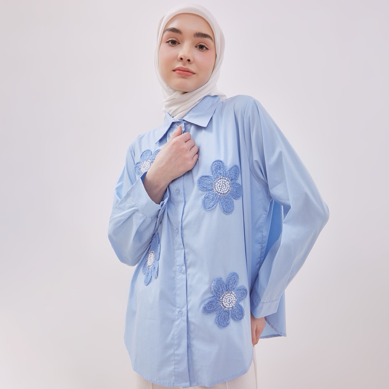Emeraude | Beatrice Kemeja Wanita Bunga / Atasan Kemeja Wanita Muslim Dewasa / Atasan Kemeja Wanita Bunga Jumbo