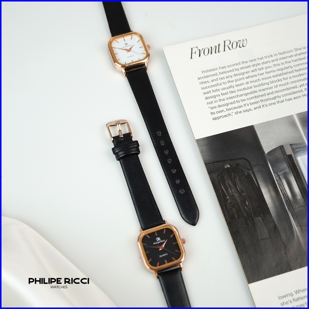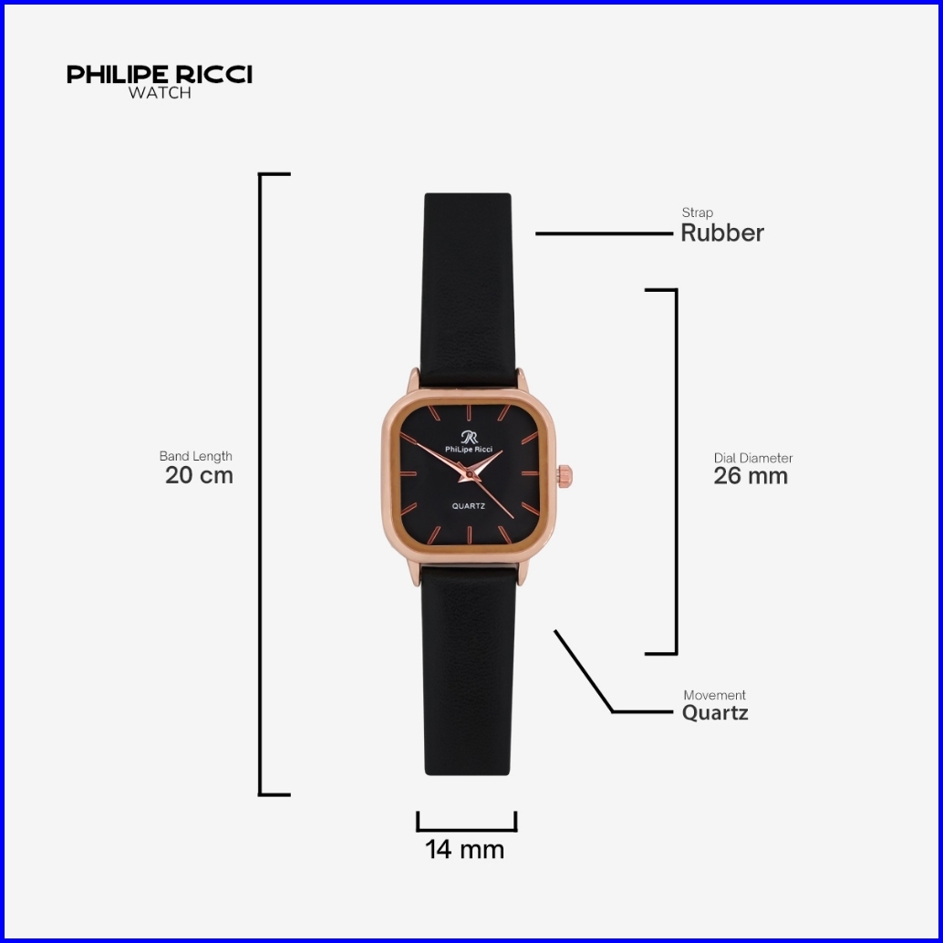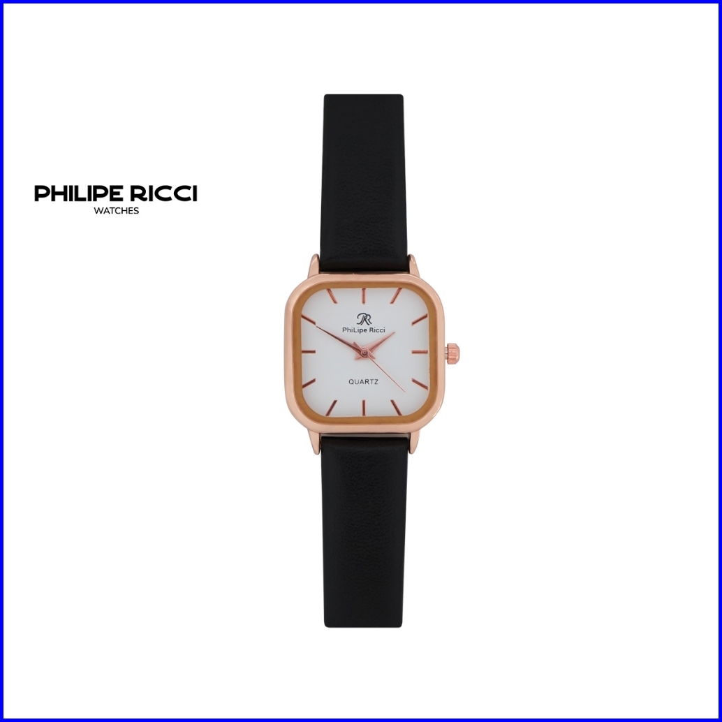 Philipe Ricci Jam Tangan Wanita Kulit Kecil Aesthetic Kotak Original 7487 Jam Cewek Mini Rose Hitam
