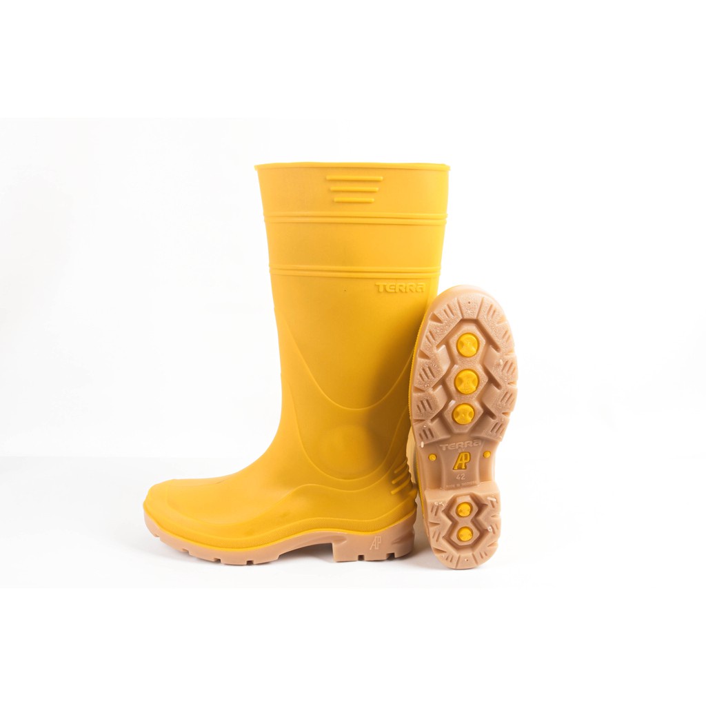 Sepatu Boot Tinggi AP BOOTS AP TERRA 1 Kuning Karet Lentur Anti Slip Air Lokal Nyaman Kontruksi Proyek