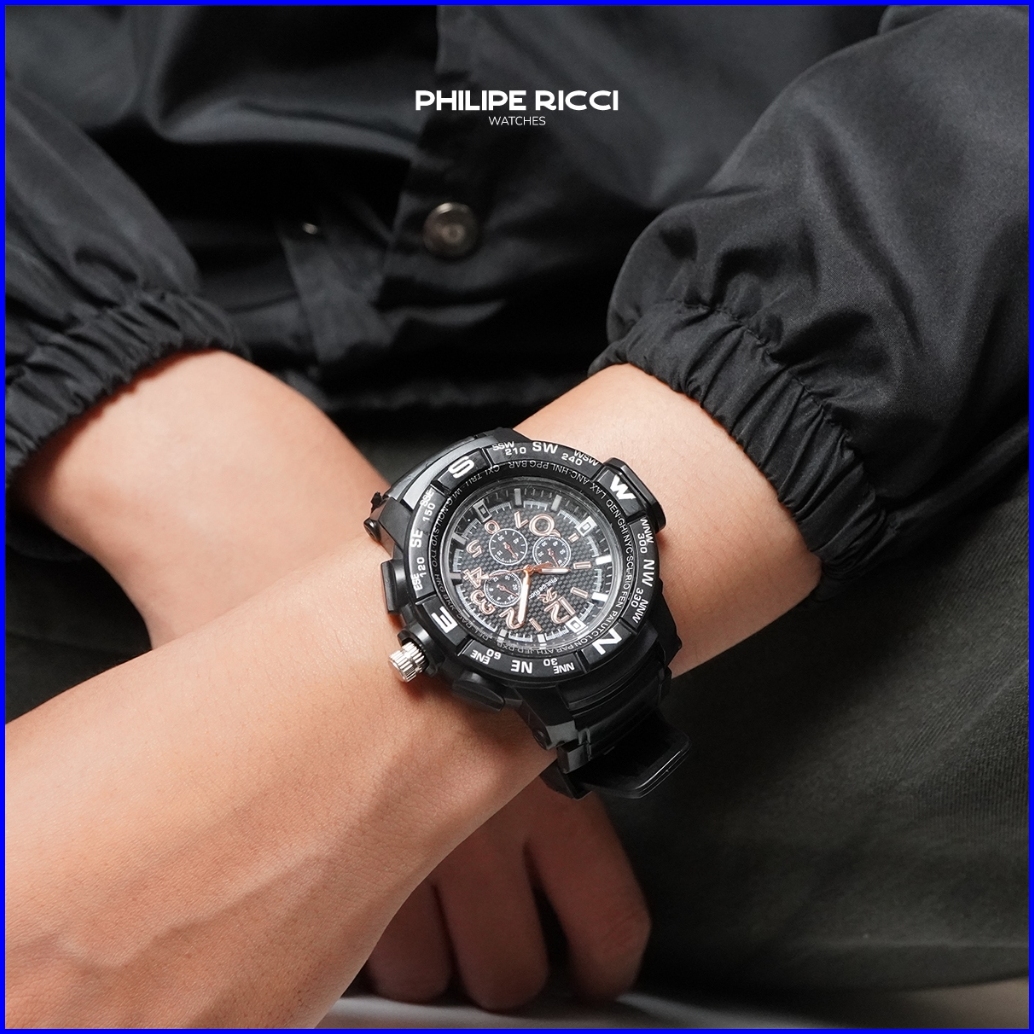 Philipe Ricci Jam Tangan Pria Karet Hitam Analog Quartz Keren Original Terbaru 1801a Men Watches