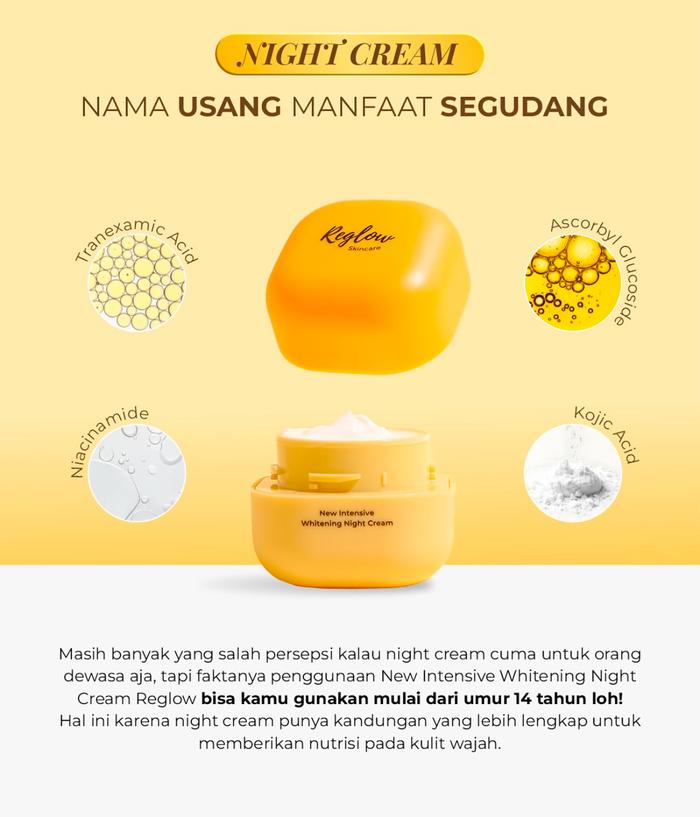 Reglow Skincare Paket Lengkap Facial Wash Toner Intensive Day Cream Night Cream Whitening Serum